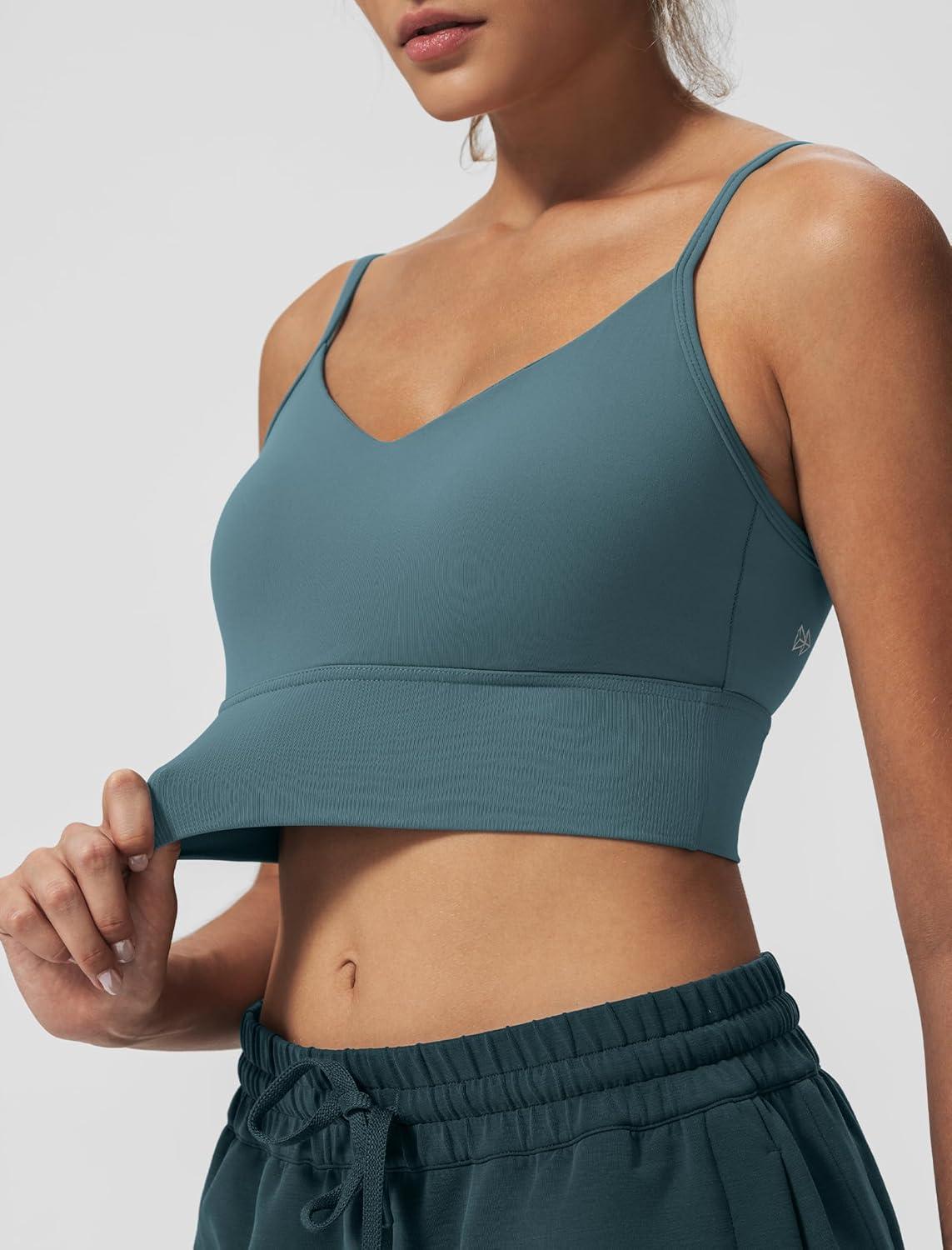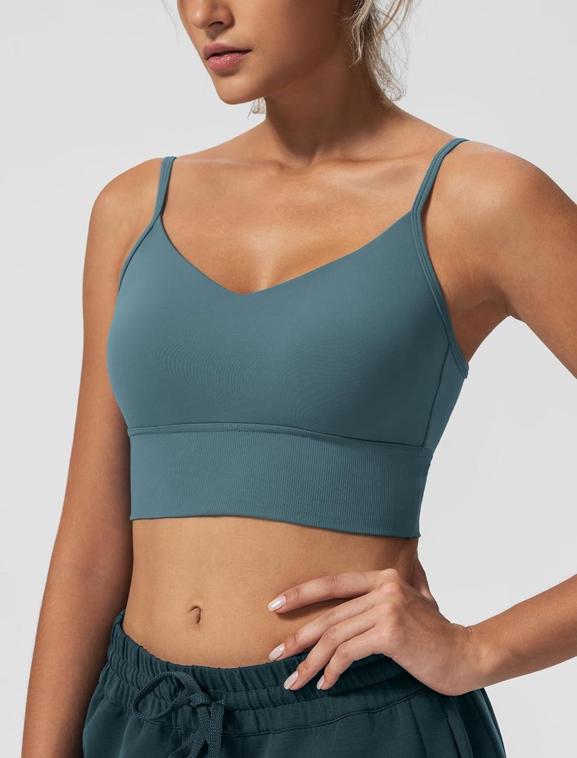 Yvette Adjustable Spaghetti Straps V Back Sports Bras for Women Light Support Padded Wireless Yoga Bra Cropped Tank Top(Blue)