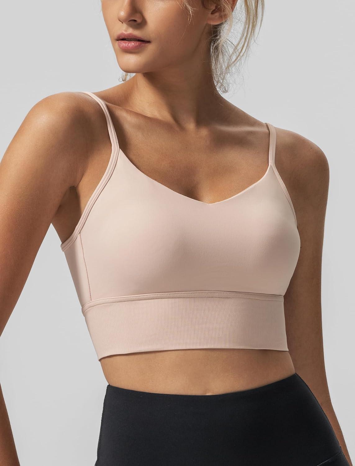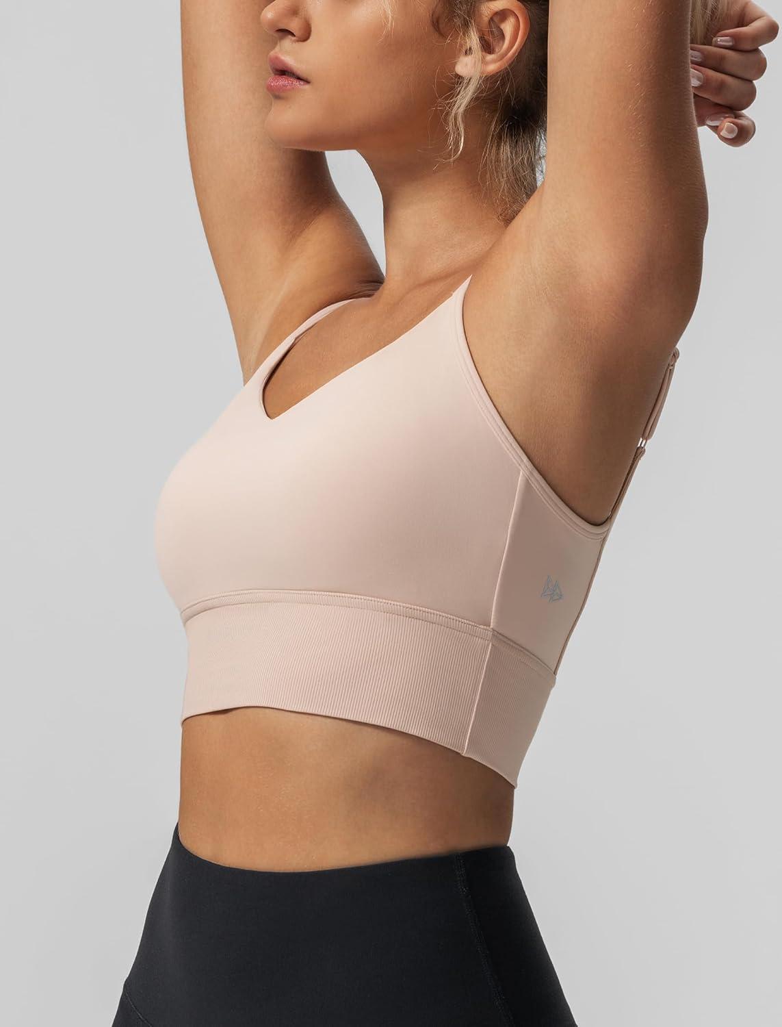 Yvette Adjustable Spaghetti Straps V Back Sports Bras for Women Light Support Padded Wireless Yoga Bra Cropped Tank Top(Pink)