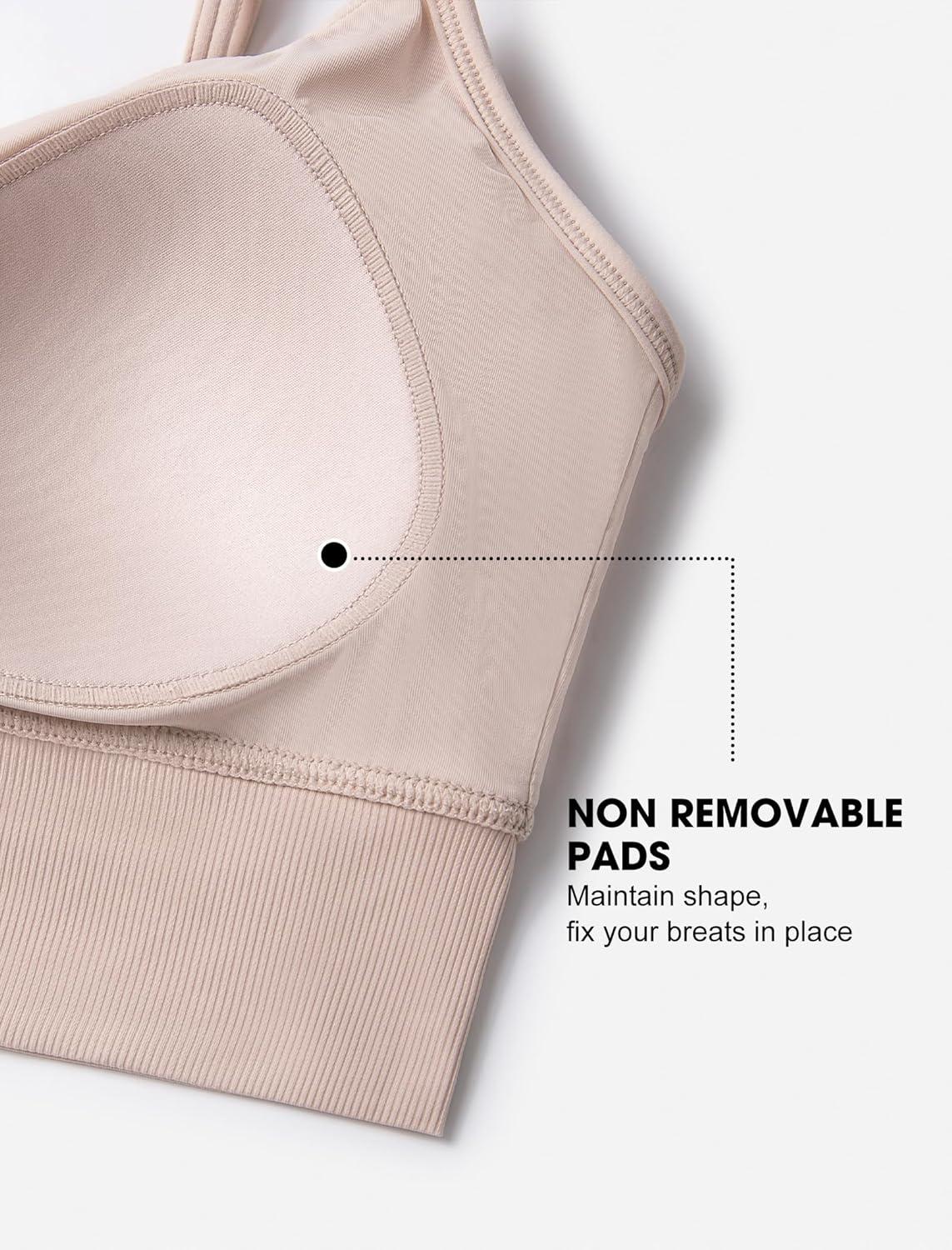 imageYvette Adjustable Spaghetti Straps V Back Sports Bras for Women Light Support Padded Wireless Yoga Bra Cropped Tank TopPink