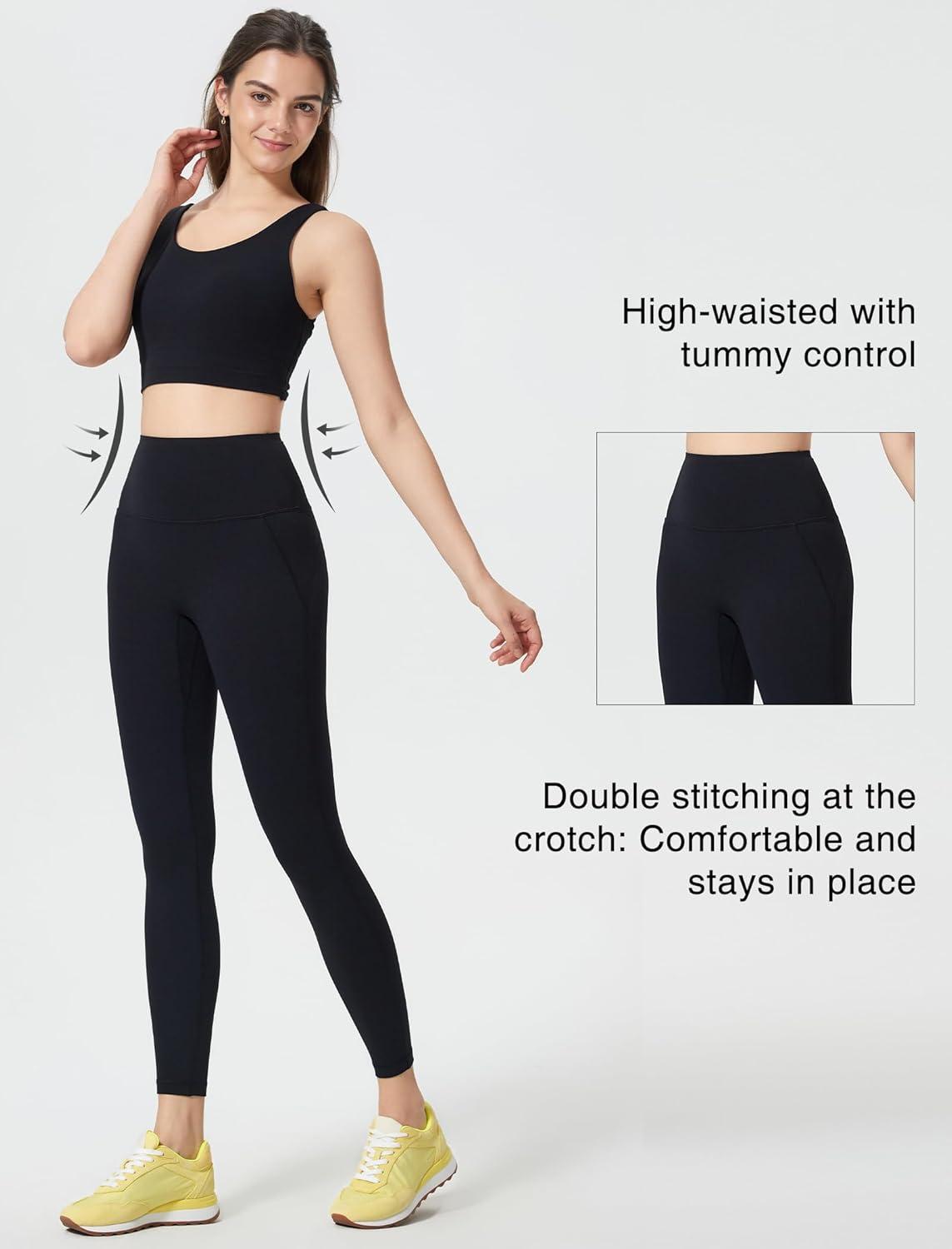imageYvette Athletic Leggings for Women High Waist Tummy Control Non SeeThrough Workout TightsBlack
