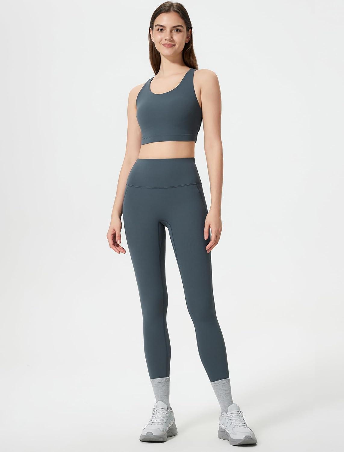 imageYvette Athletic Leggings for Women High Waist Tummy Control Non SeeThrough Workout TightsBlue