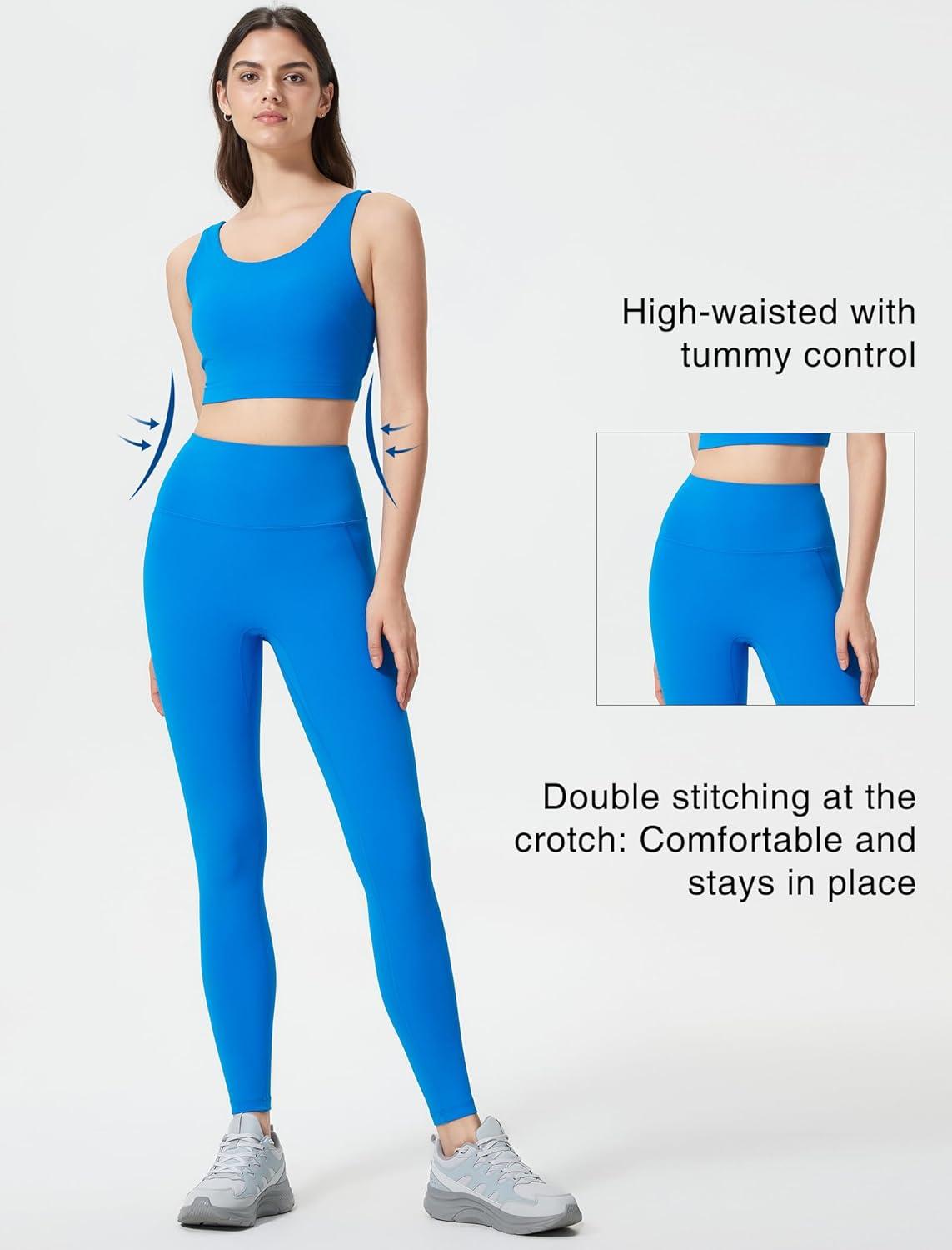 imageYvette Athletic Leggings for Women High Waist Tummy Control Non SeeThrough Workout TightsBlue