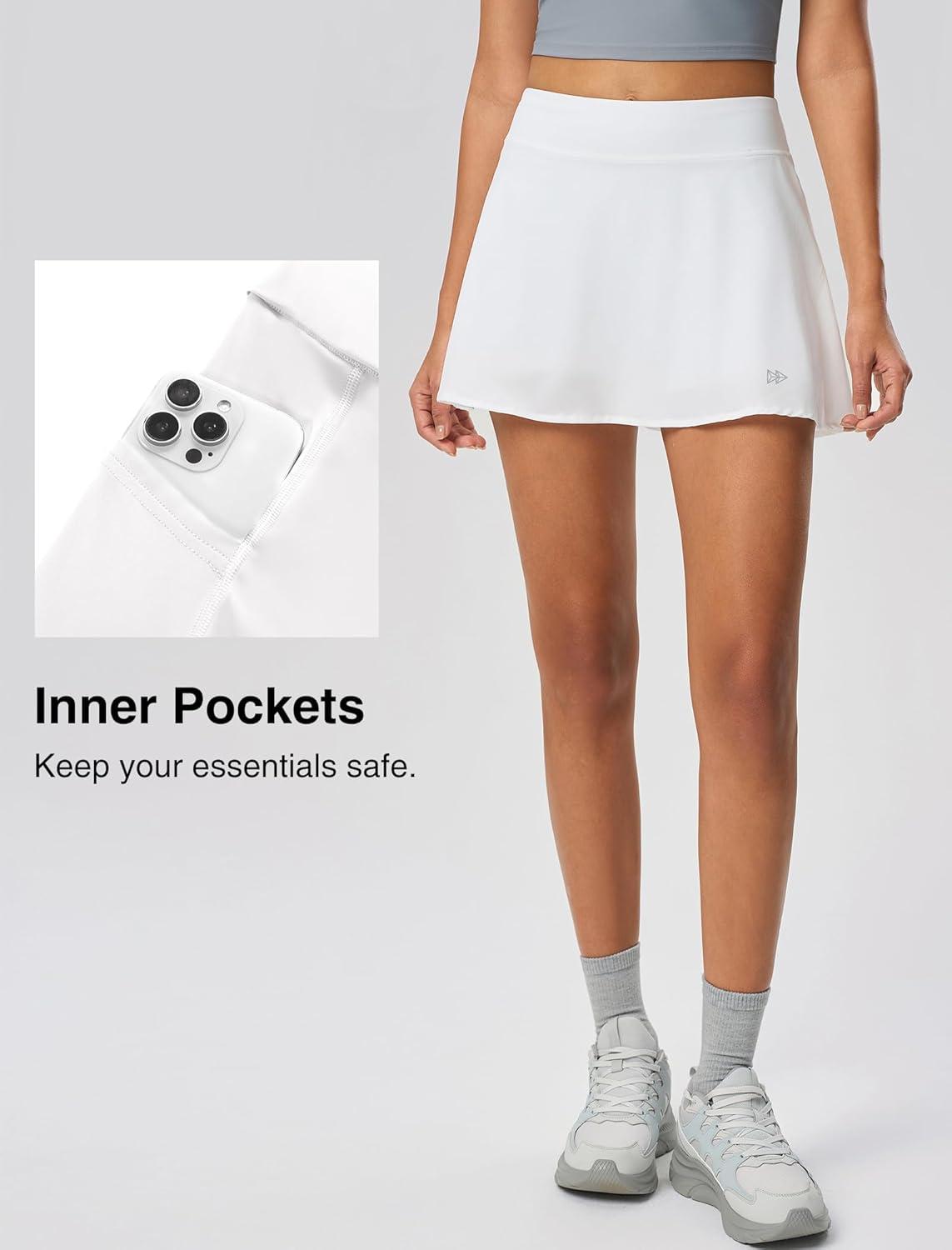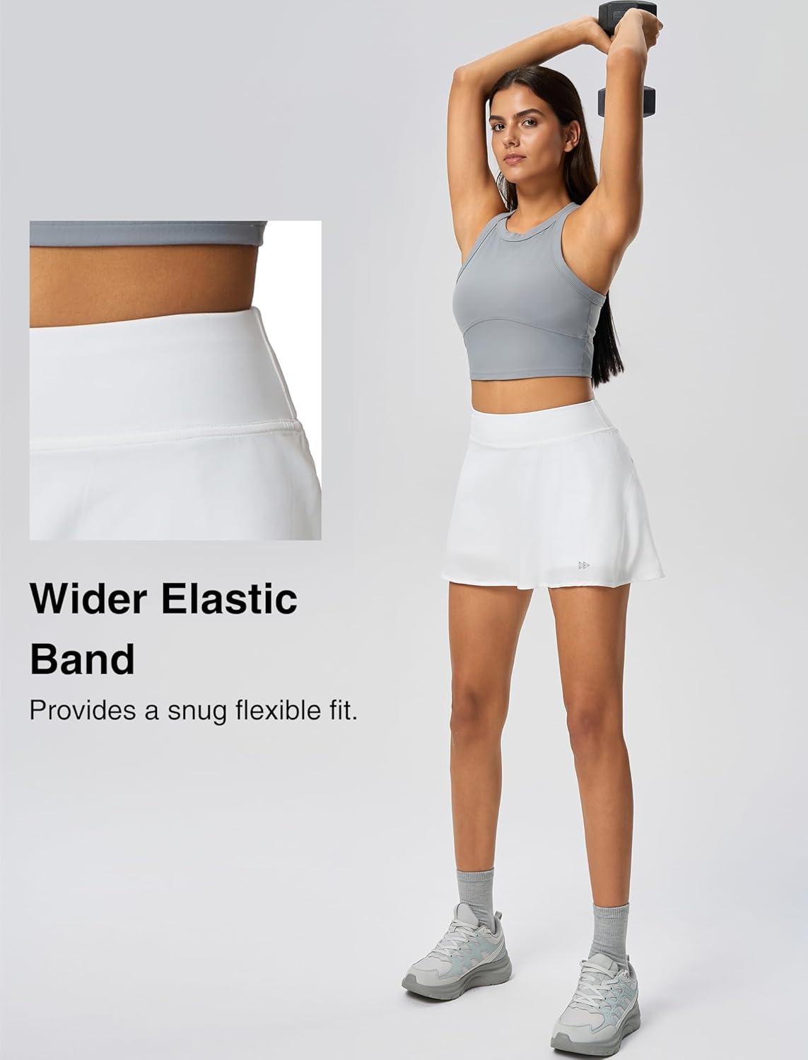 Yvette Athletic Skirt for Tennis Golf Pickleball – High Waisted Sports Skorts with Pockets(White)
