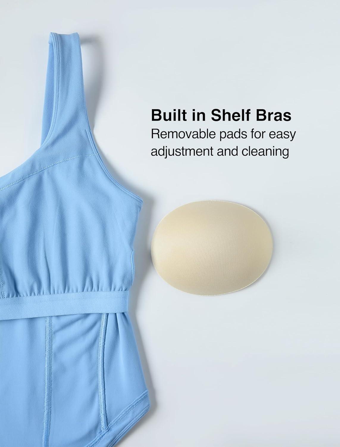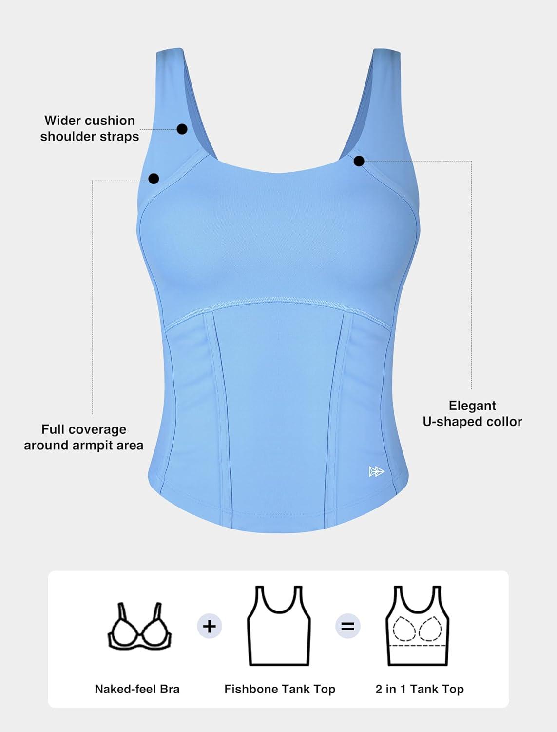 Yvette Athletic Tank Tops for Women Built in Bra Workout Yoga Padded Basic Cami Shirts Gym Tennis Pickleball(Blue)