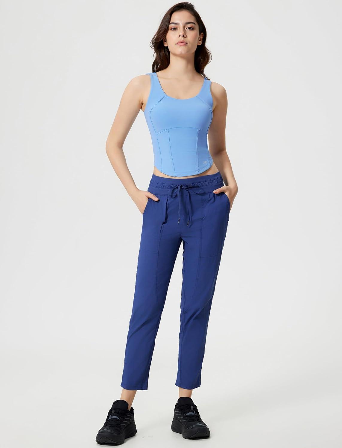imageYvette Athletic Tank Tops for Women Built in Bra Workout Yoga Padded Basic Cami Shirts Gym Tennis PickleballBlue