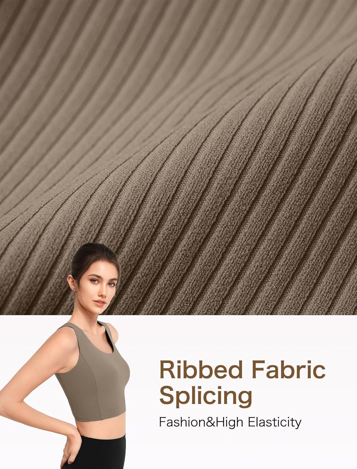 Yvette Comfortable Yoga Sports Bra Scoop Neck with Built-in Bra and Round Back Cutout Workout Top(Brown)