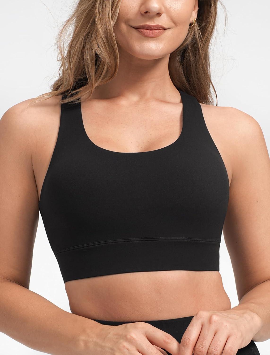 Yvette Criss Cross Back Removable Cups Padded Strappy U NeckYoga Sports Bras Light Support Wireless Bra Cropped Tank Top(Black)