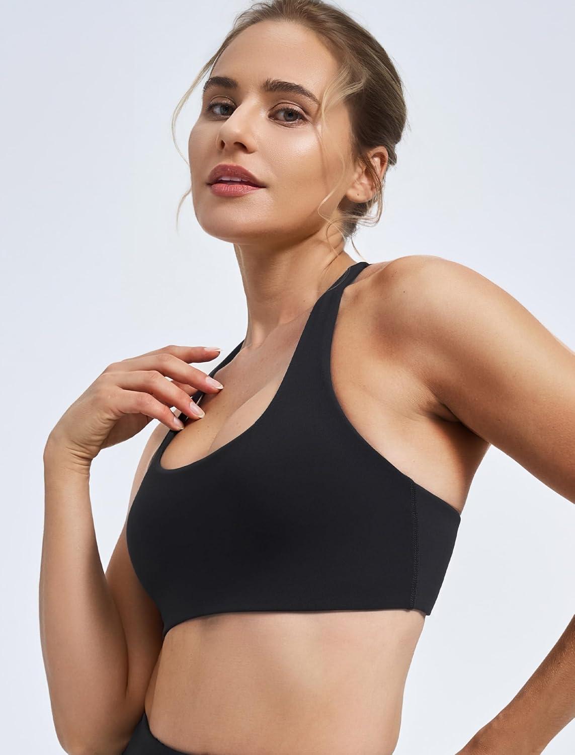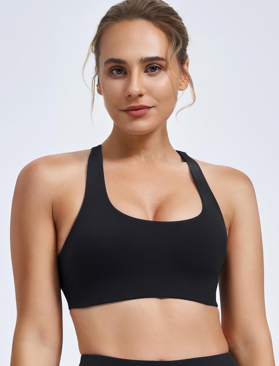 Yvette Criss Cross Back Removable Cups Padded Strappy U NeckYoga Sports Bras Light Support Wireless Bra Cropped Tank Top(Black)