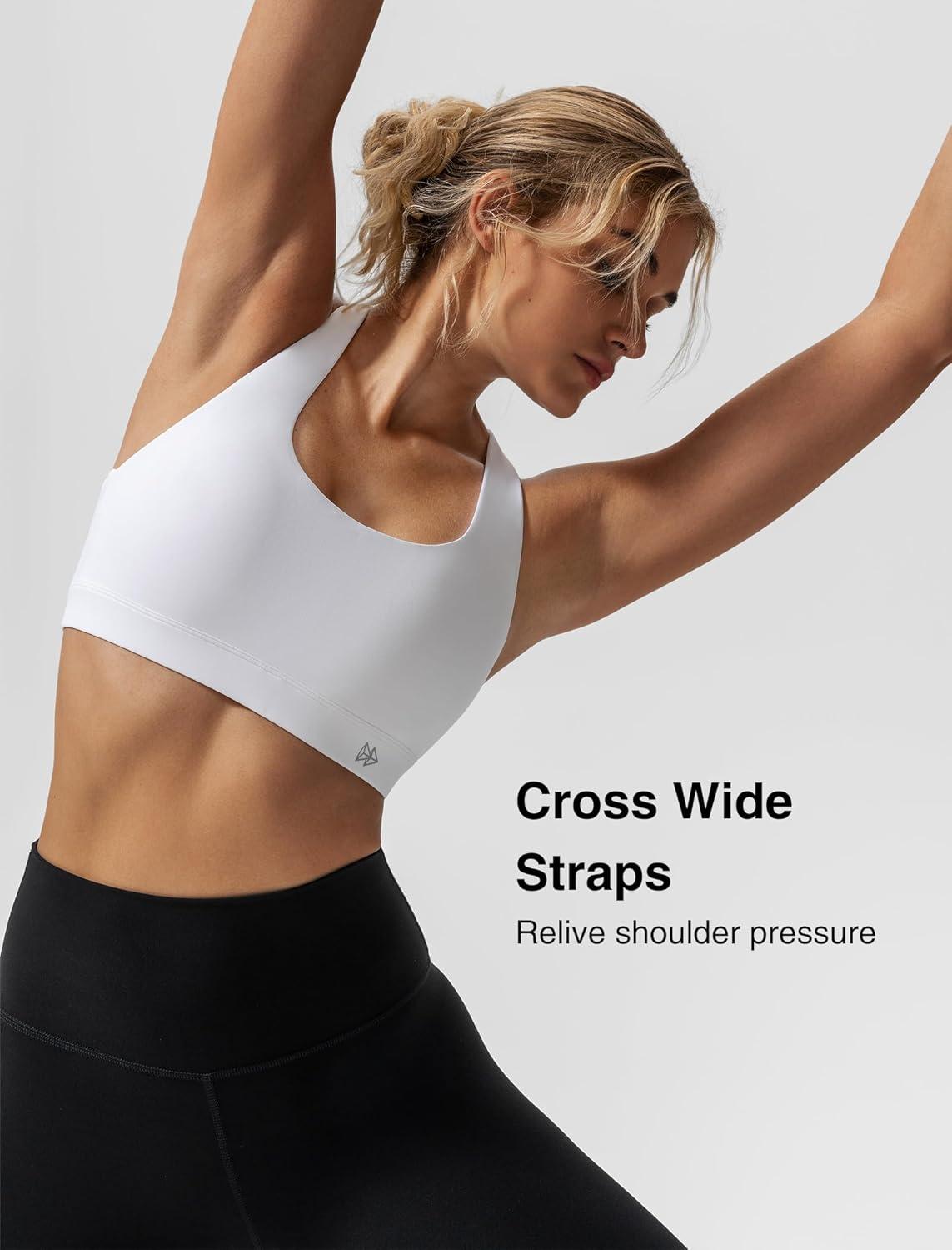 imageYvette Criss Cross Back Yoga Bra with Removable Pad Sports Bras for Women Light Support SexyWhite