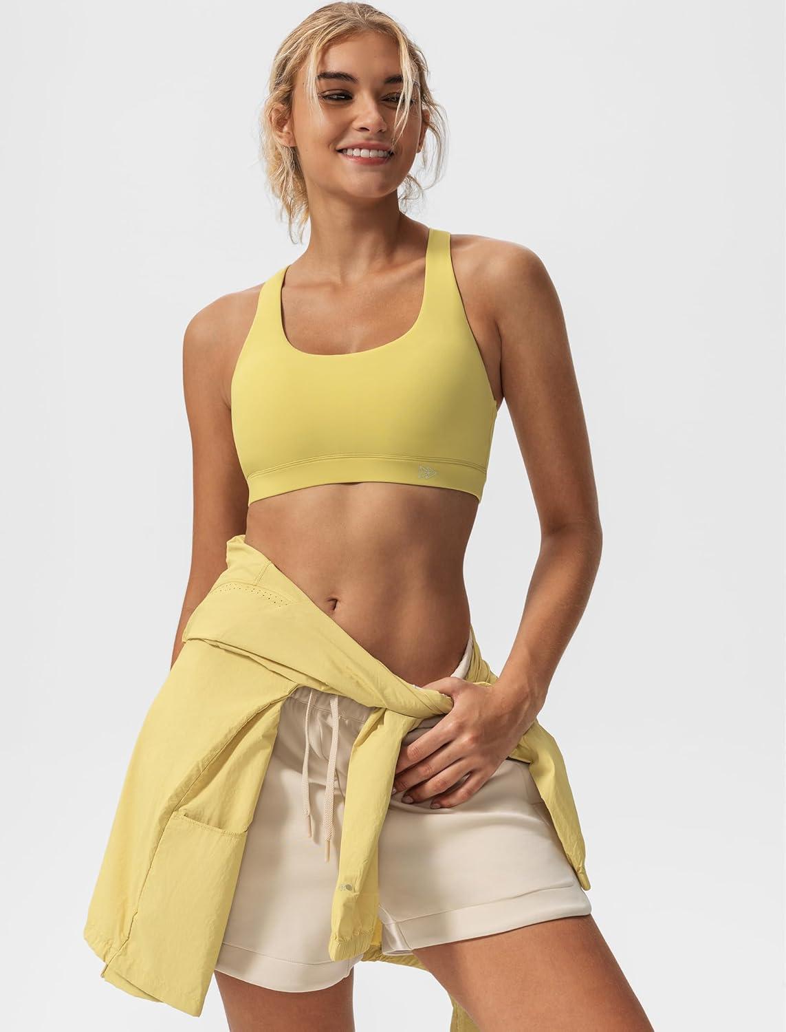 imageYvette Criss Cross Back Yoga Bra with Removable Pad Sports Bras for Women Light Support SexyYellow