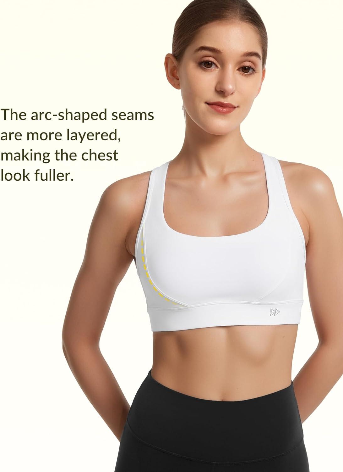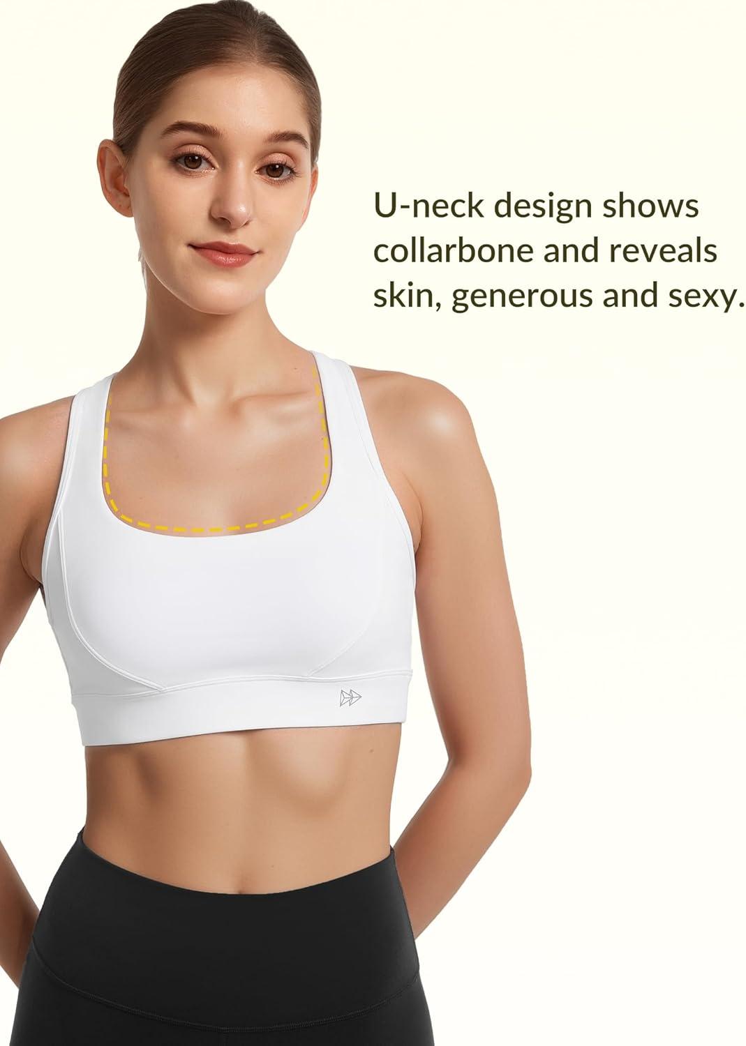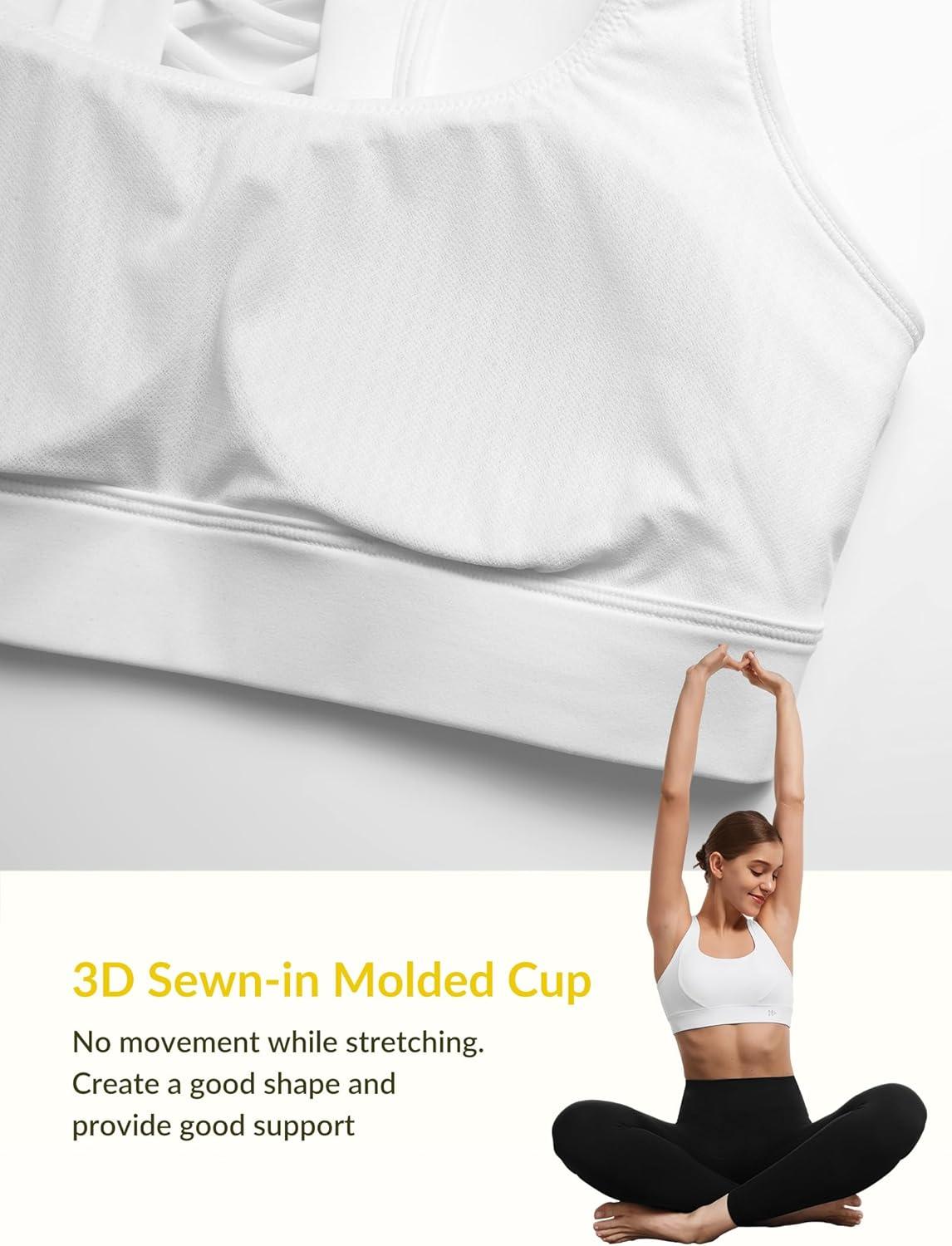Yvette Criss Cross Cute Strappy Sports Bras for Women U Neck Racerback Padded Wireless Yoga Bra Cropped Tank Top(White)