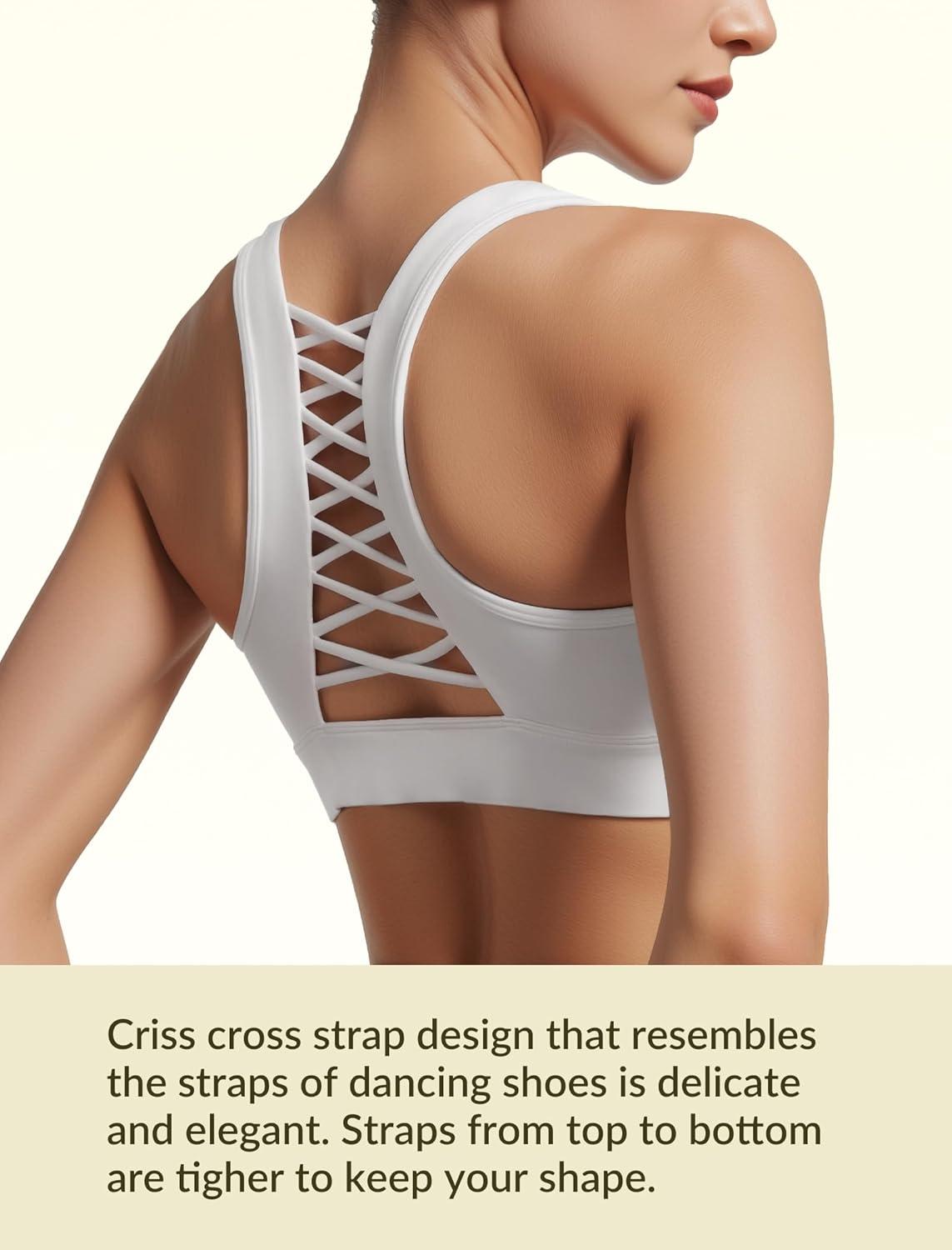 imageYvette Criss Cross Cute Strappy Sports Bras for Women U Neck Racerback Padded Wireless Yoga Bra Cropped Tank TopWhite