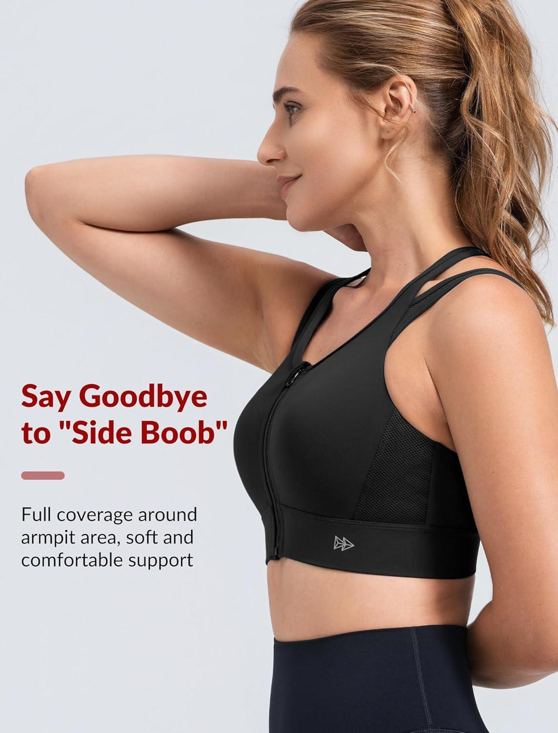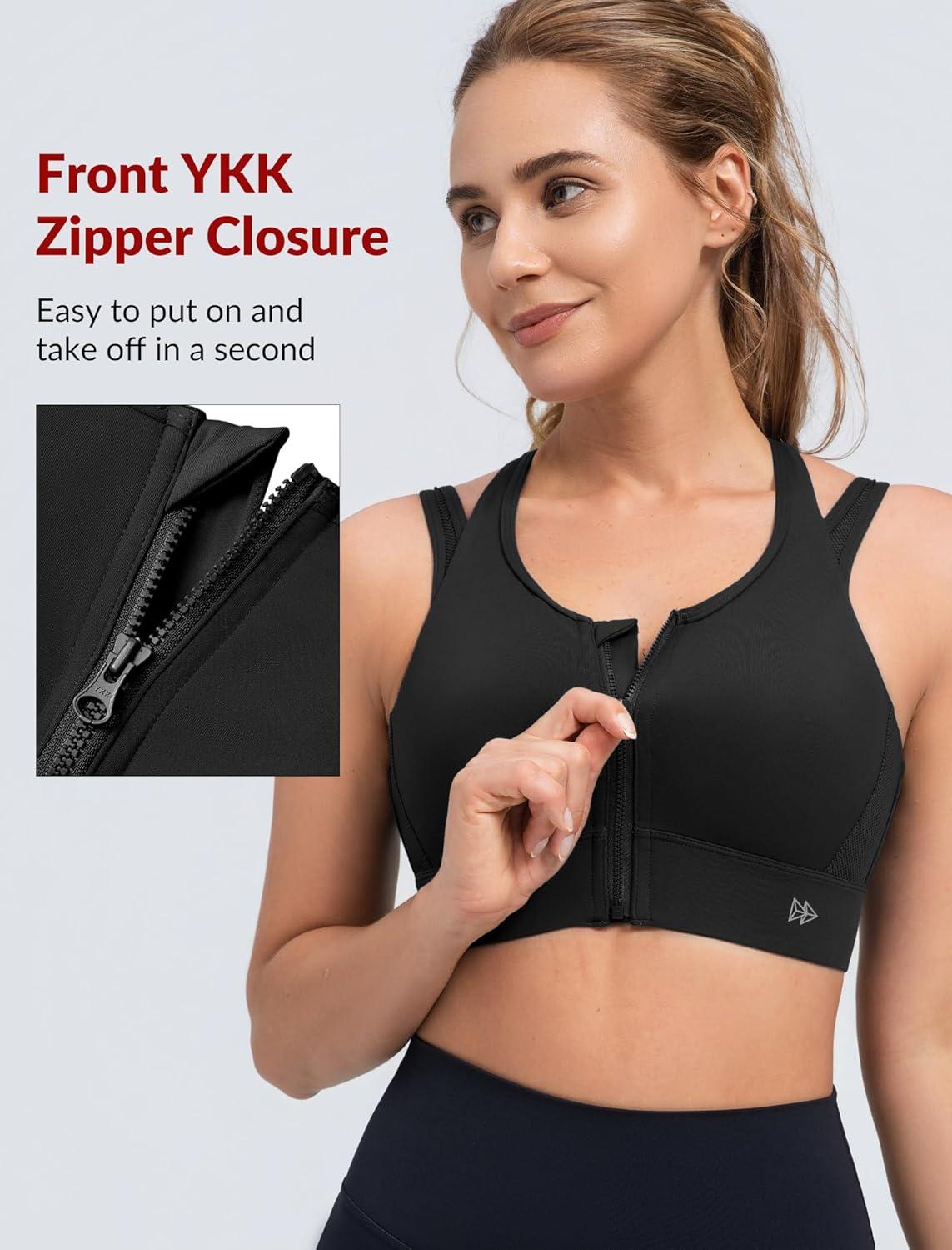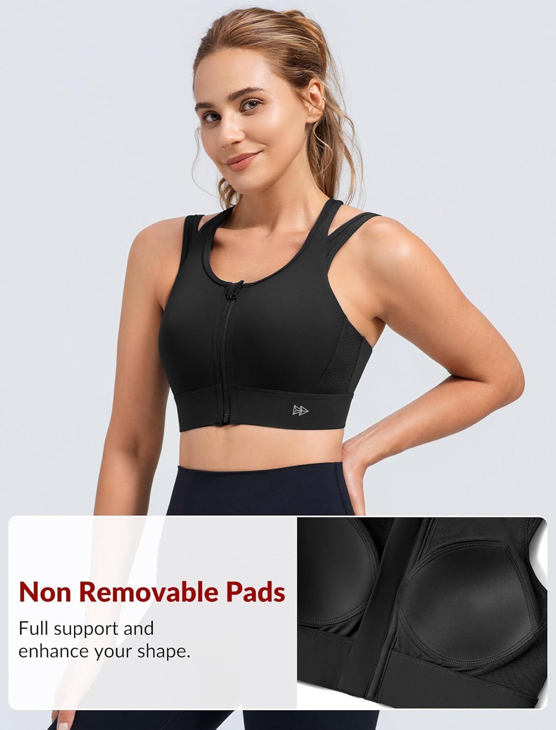 Yvette Front Closure High Support Sports Bras for Women Double Strpas Plus Size Sports Bra with Sewn in Pads(Black)