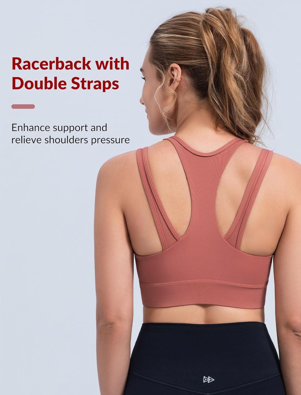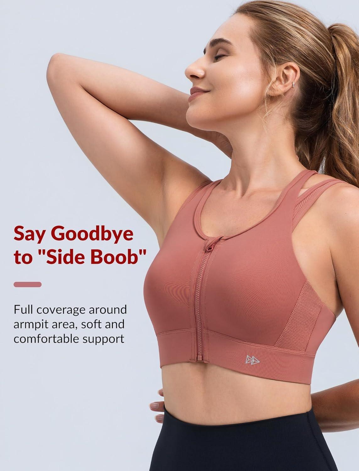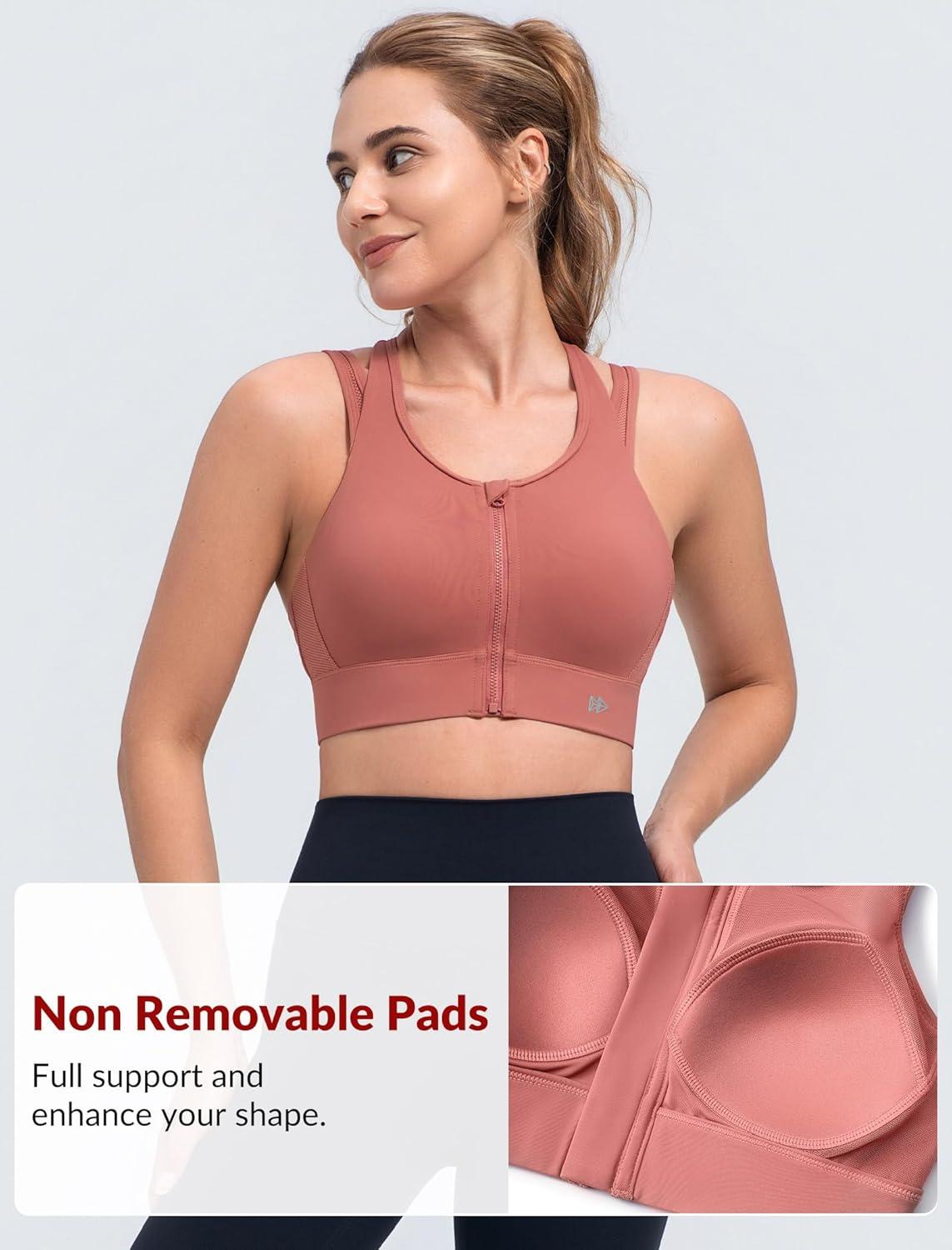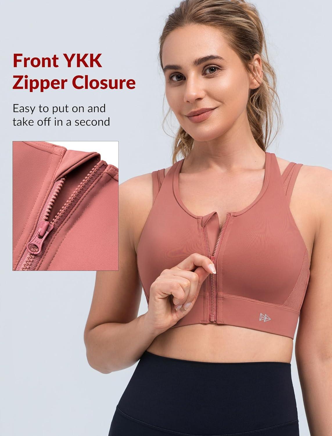 Yvette Front Closure High Support Sports Bras for Women Double Strpas Plus Size Sports Bra with Sewn in Pads(Rose Red)