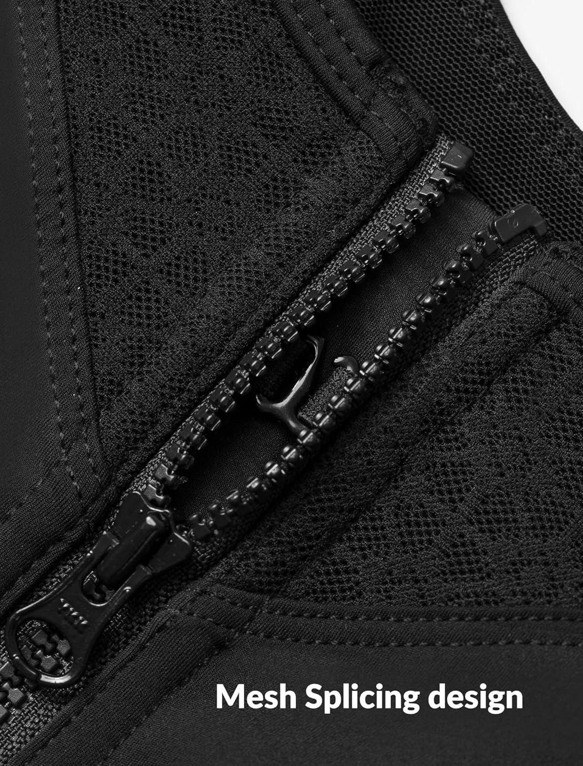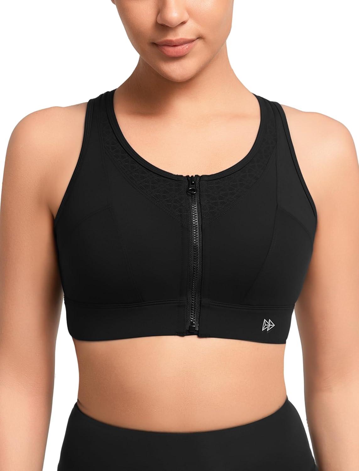 Yvette High Impact Sports Bras for Women Front Zip Supportive Running Bras for Large Bust Plus Size(Black)