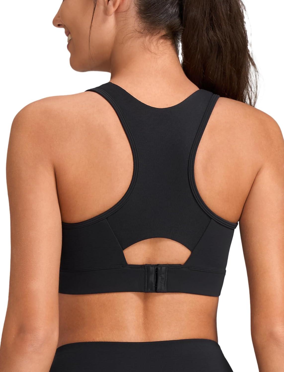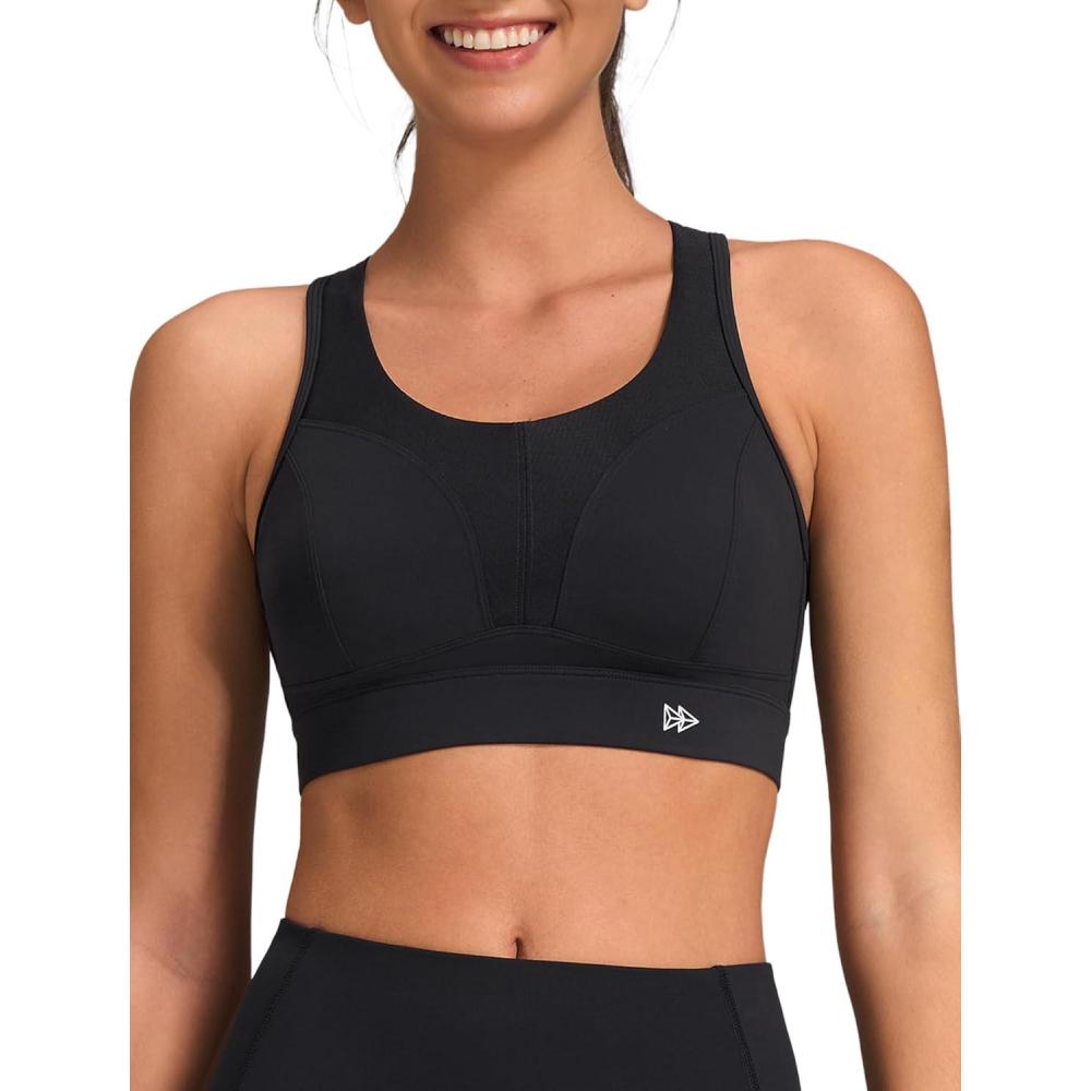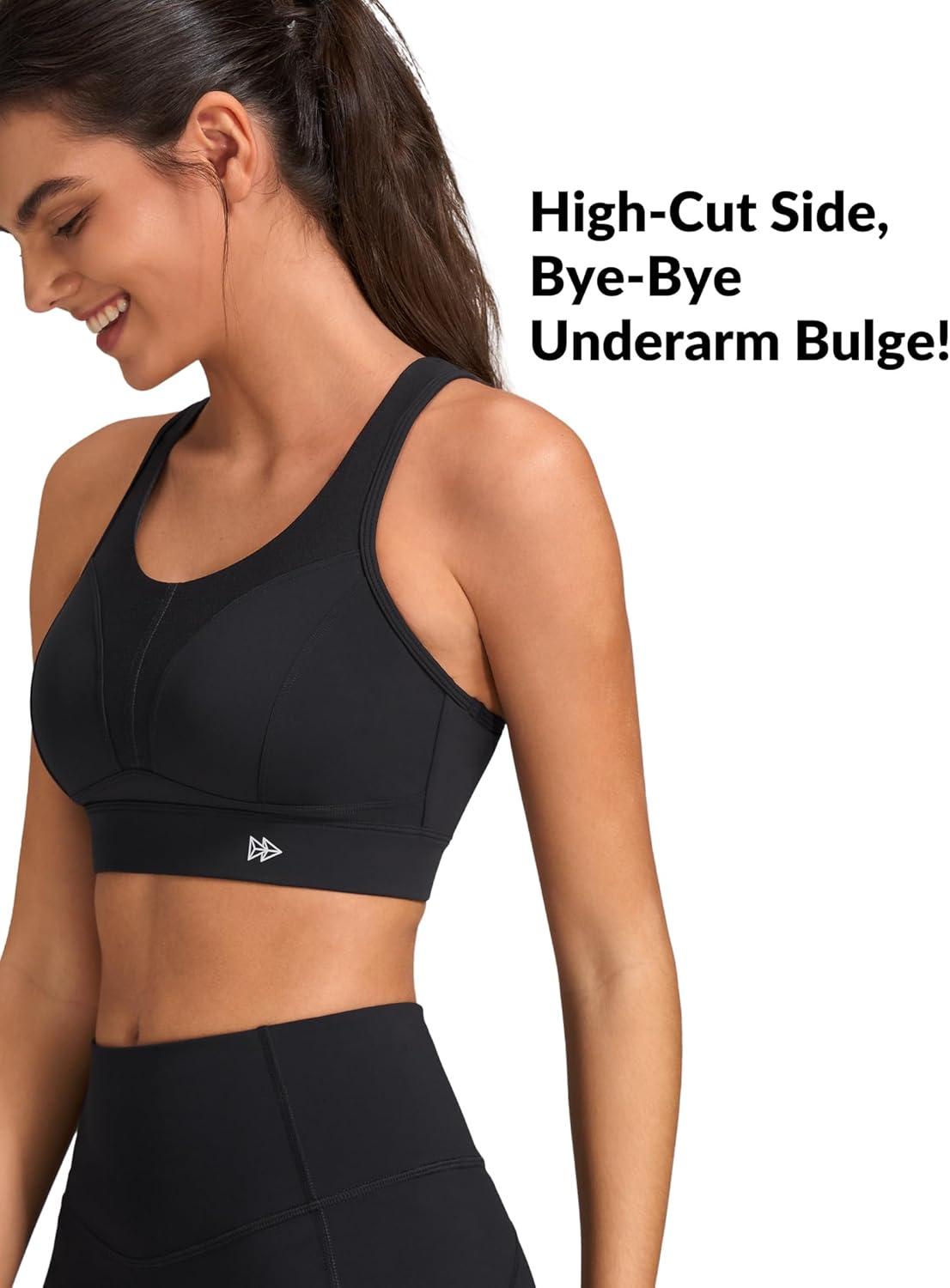 Yvette High Impact Sports Bras for Women Racerback Supportive Bras for Running(Black)