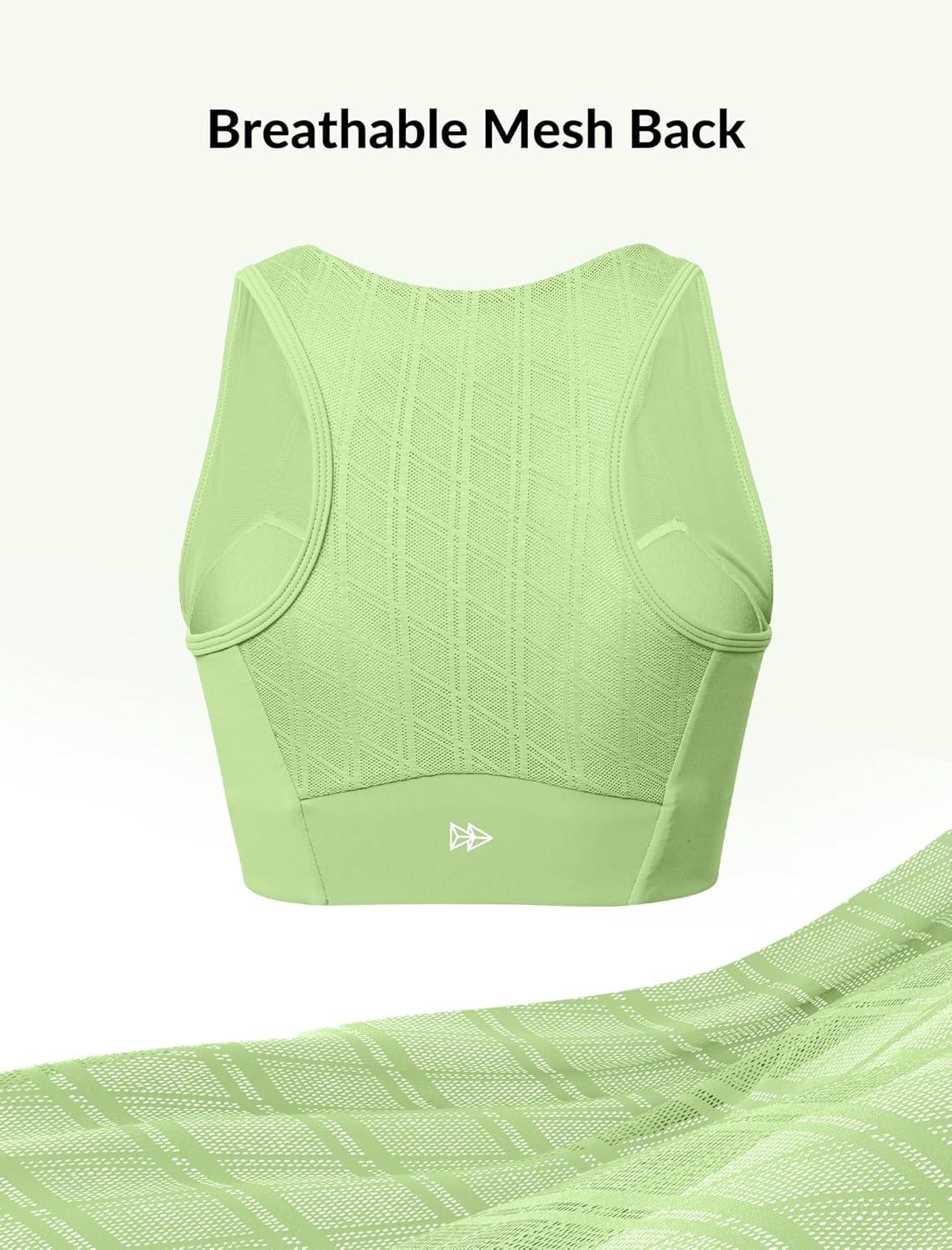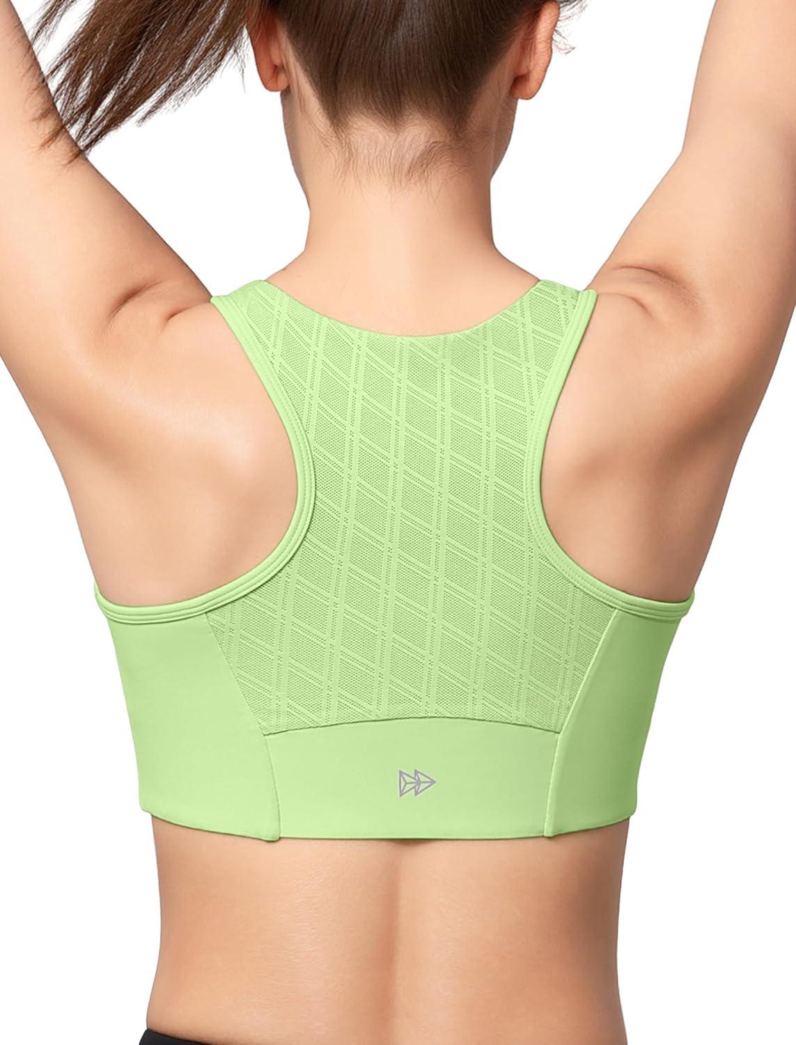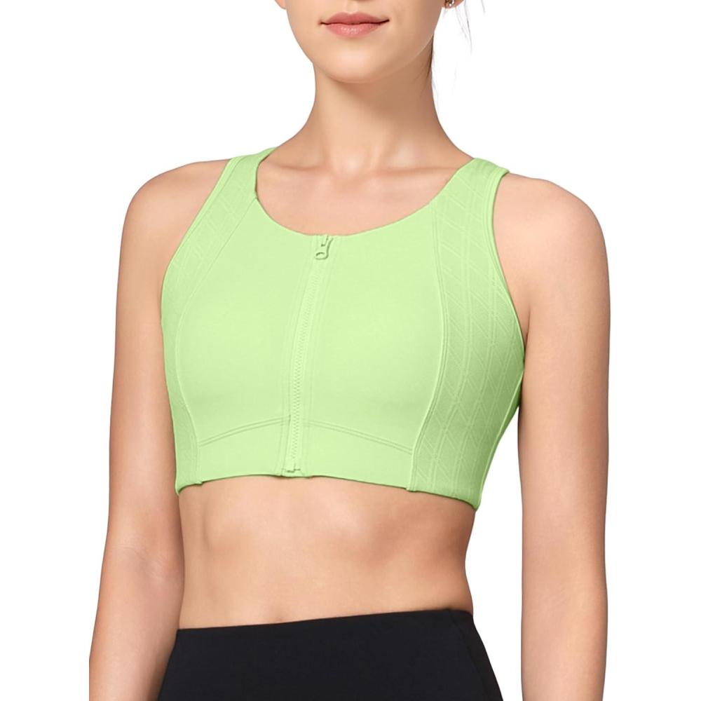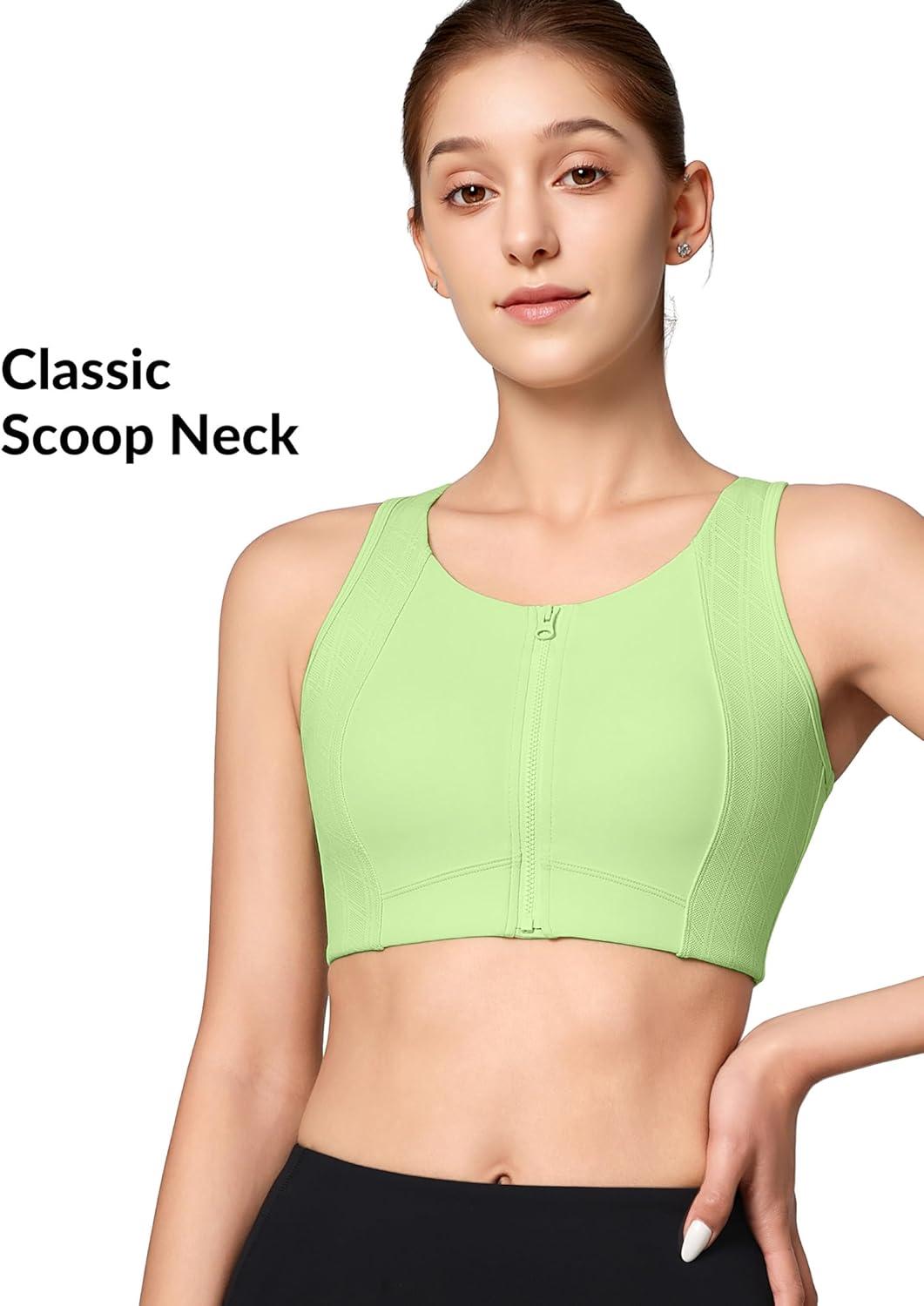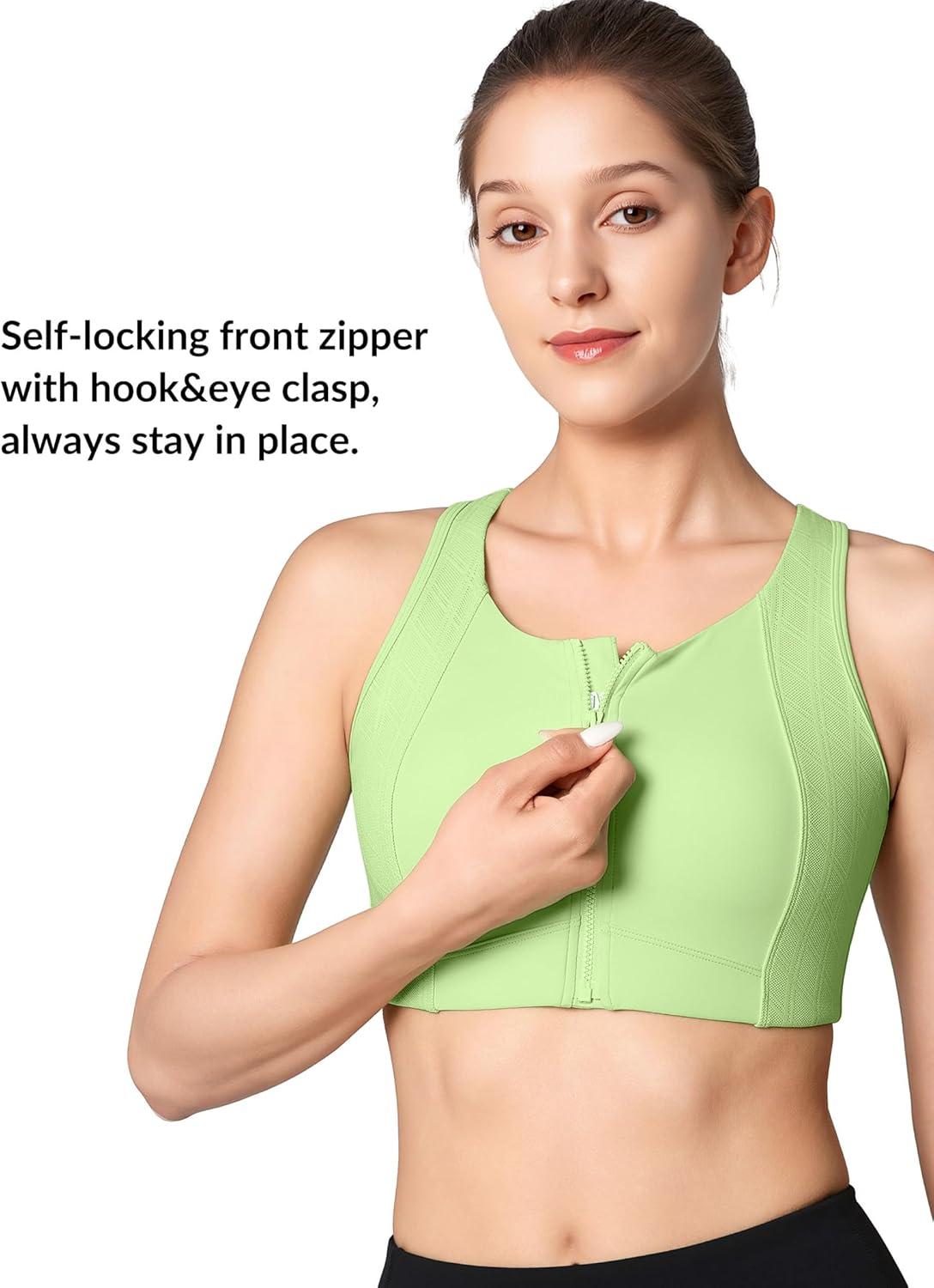 imageYvette High Impact Sports Bras for Women Zip Front Racerback Supportive Bras for Large BustHighlighter Green