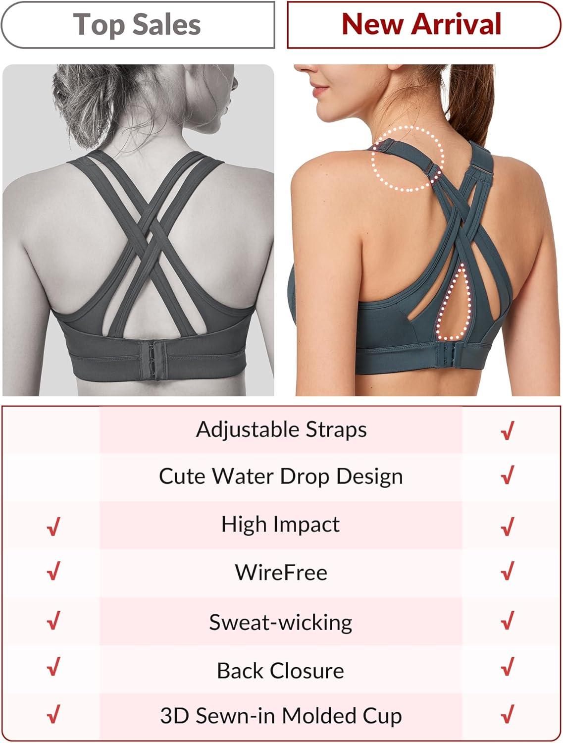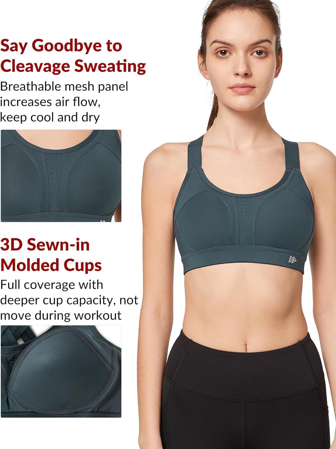 Yvette High Impact Women Sports Bra Front Closure Double Deck Mesh Running Bra for Plus Size for Plus Size(Haze Blue)
