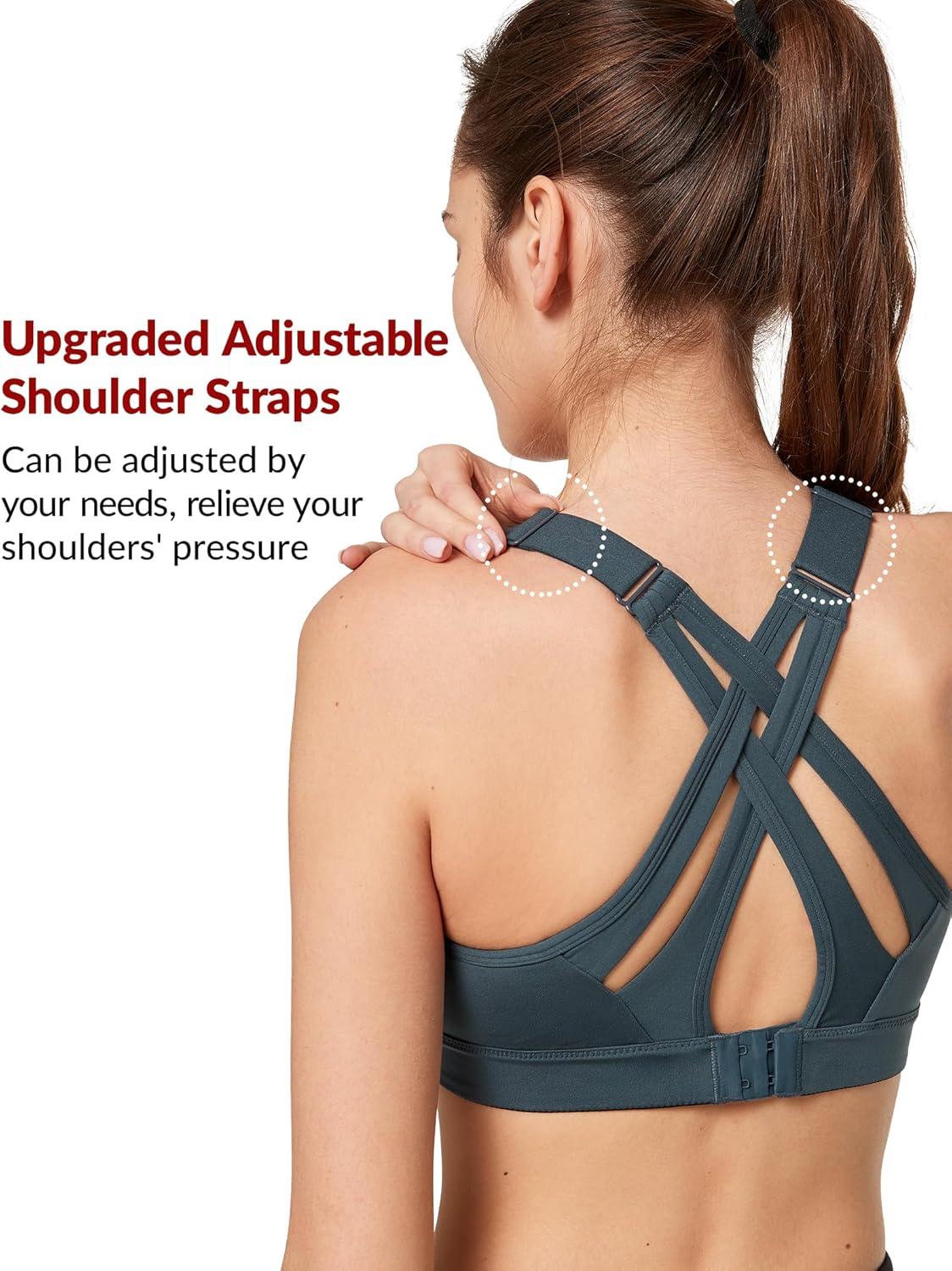 Yvette High Support Sports Bras for Women Zip Front Closure Sports Bra Plus Size Supportive Mold Cups Running Workout(Green)
