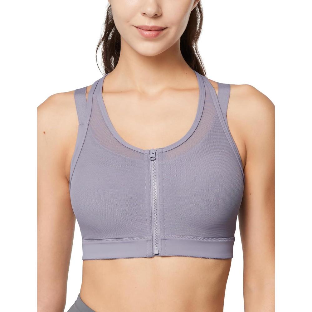 Yvette High Impact Women Sports Bra Front Closure Double Deck Mesh Running Bra for Plus Size(Violet)