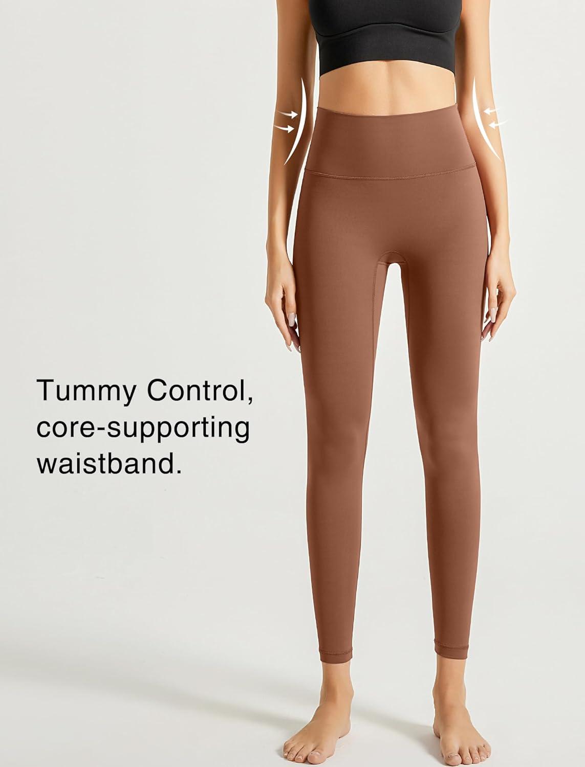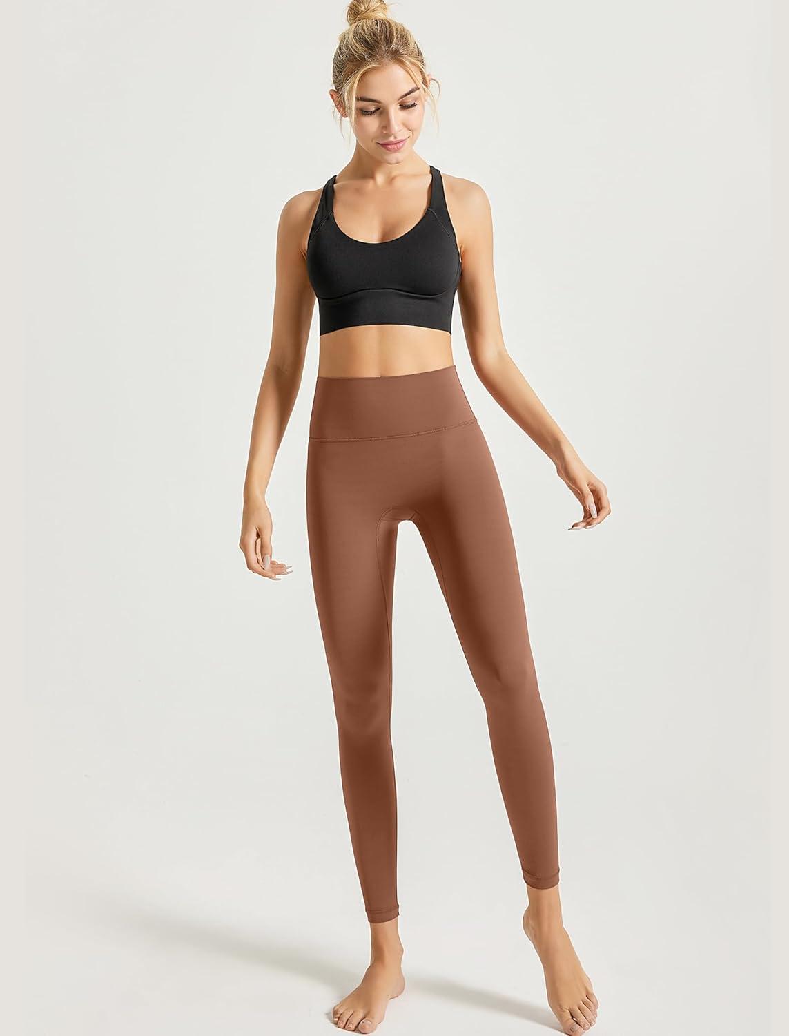 imageYvette Leggings for Women with Pockets High Waist Athletic Non SeeThrough TightsBrown