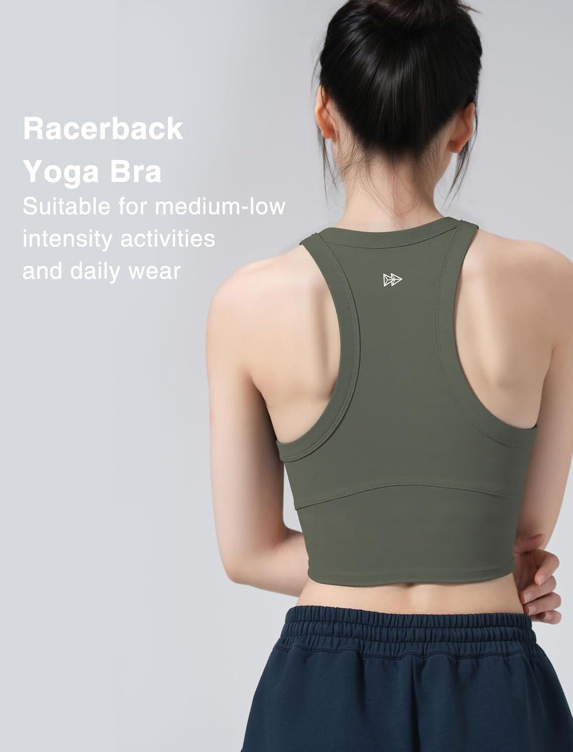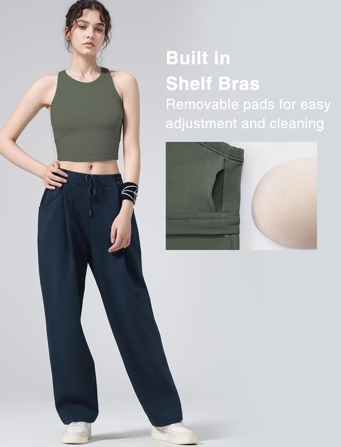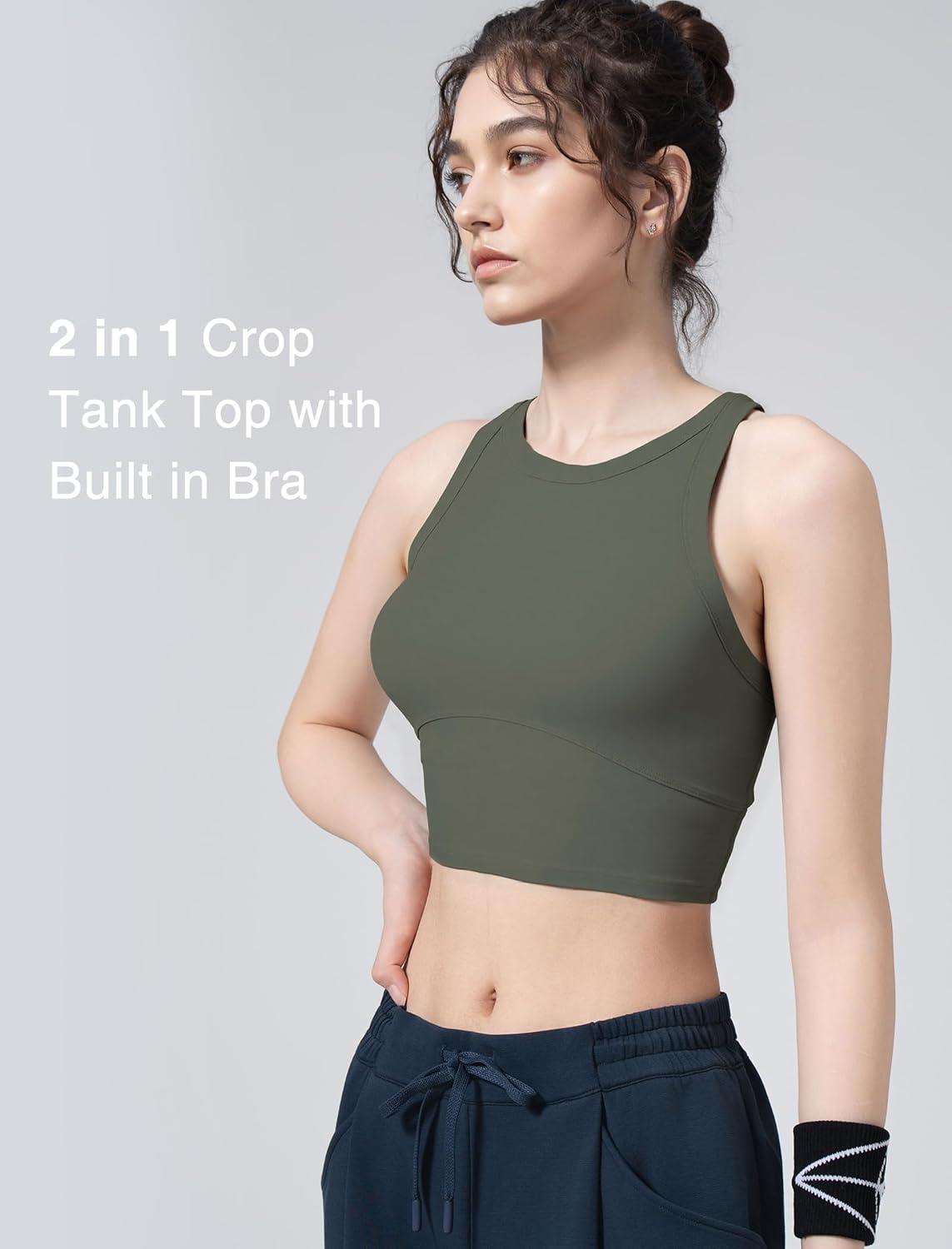 imageYvette Longline High Neck Sports Bras for Women Racerback Padded Crop Tank Top with Built in Bra Workout YogaGreen