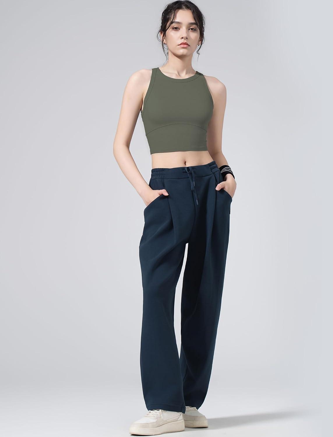 imageYvette Longline High Neck Sports Bras for Women Racerback Padded Crop Tank Top with Built in Bra Workout YogaBlue
