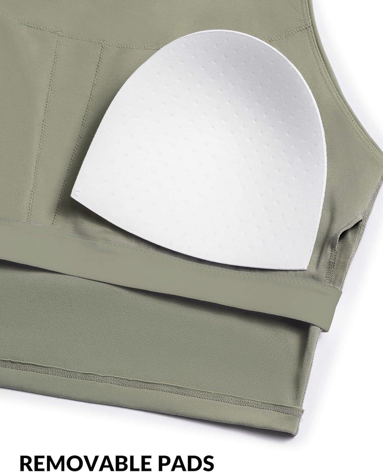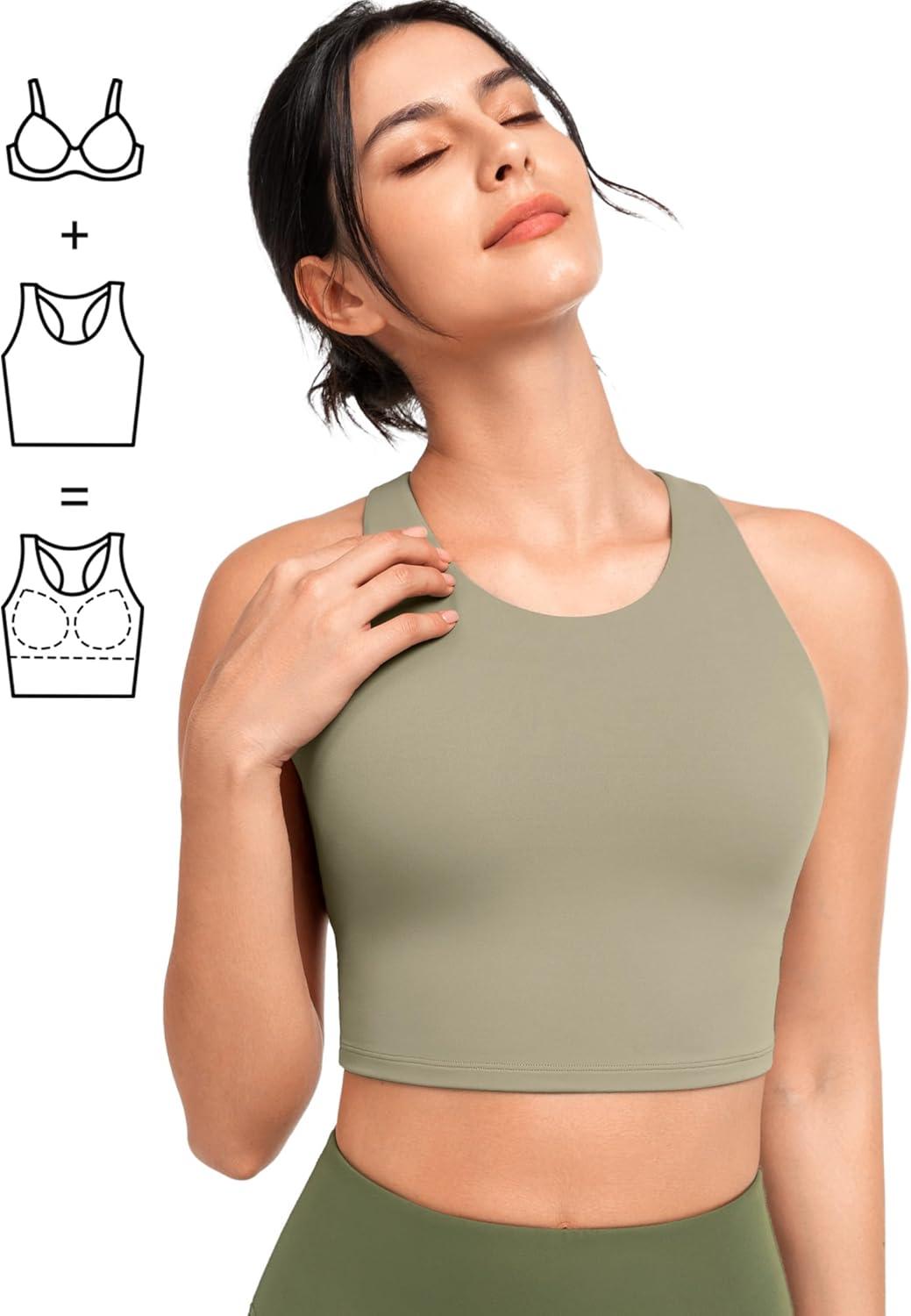imageYvette Longline Yoga Bras Gym Top for Women Sports Bra Racerback Workout with Removable PadsGreen