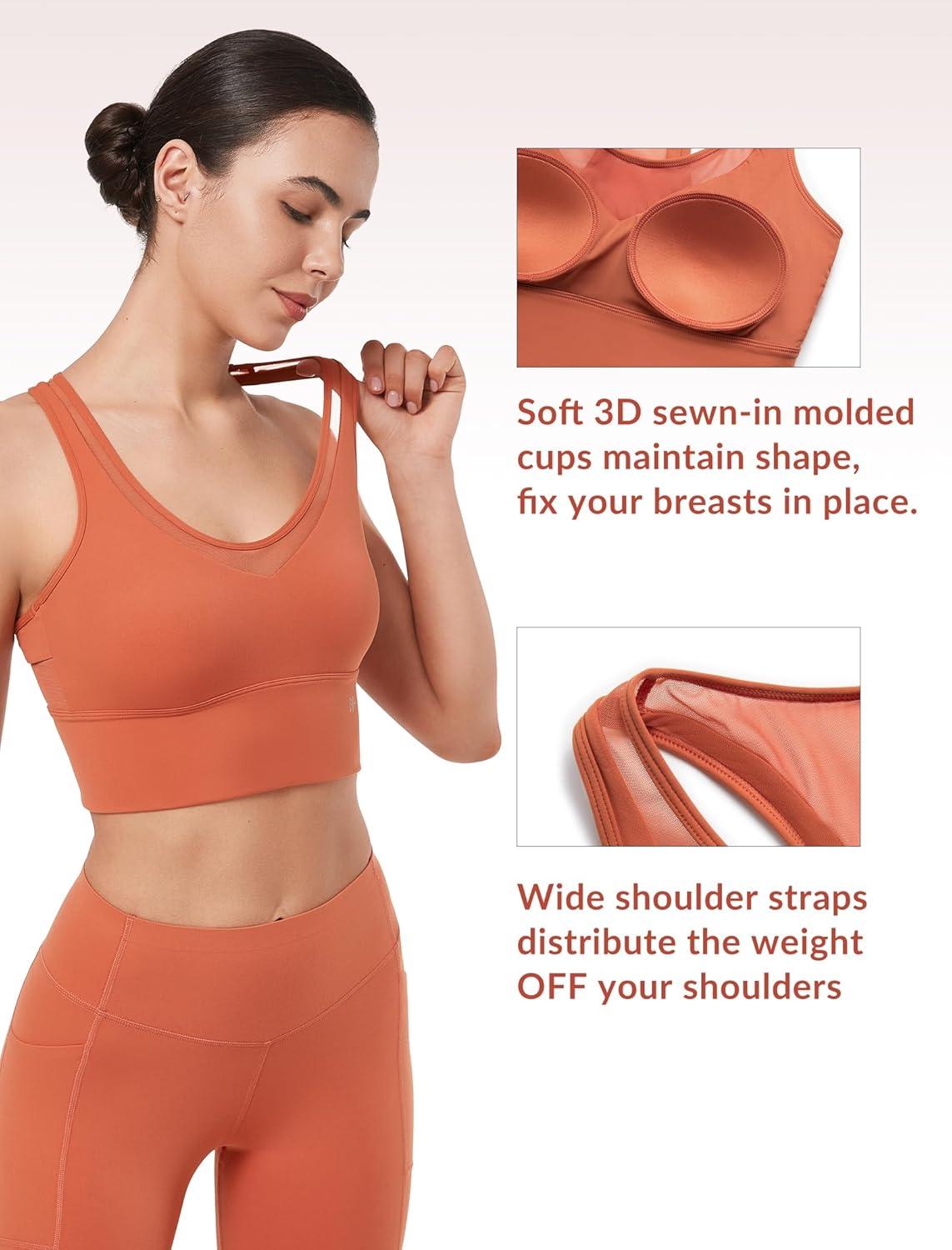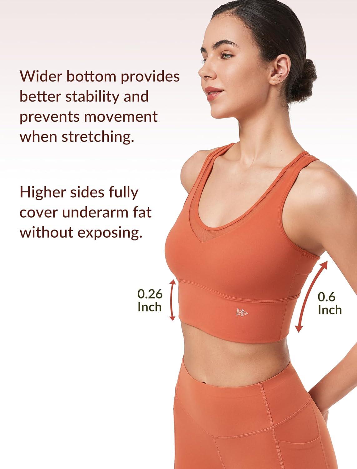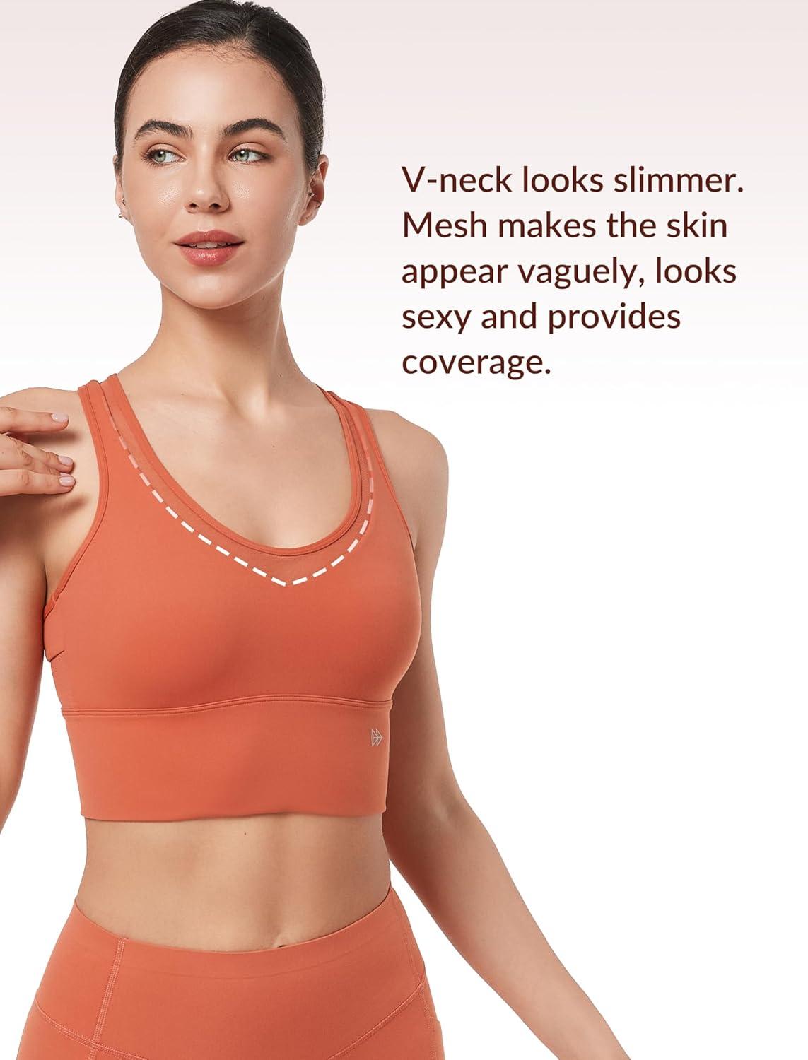 imageYvette Mesh Desin Sports Bras for Women Wide Sides Racerback V Neck Yoga Bras Tank TopCoral Red