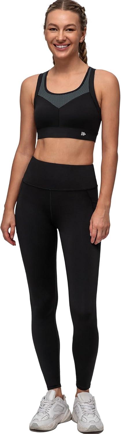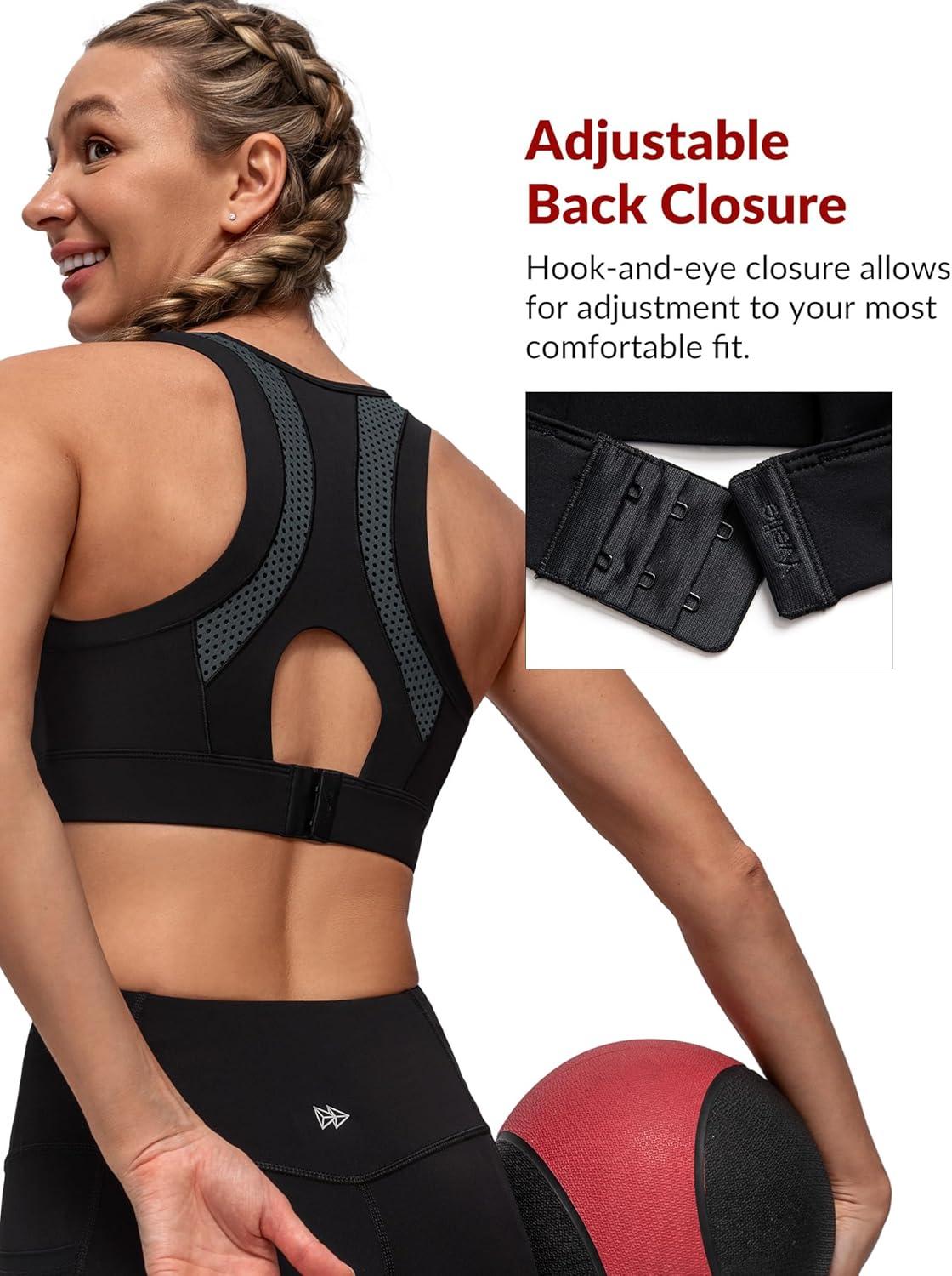 Yvette Racerback Sports Bras for Women High Support Running Supportive Sports Bra with Sewn in Pads(Black)