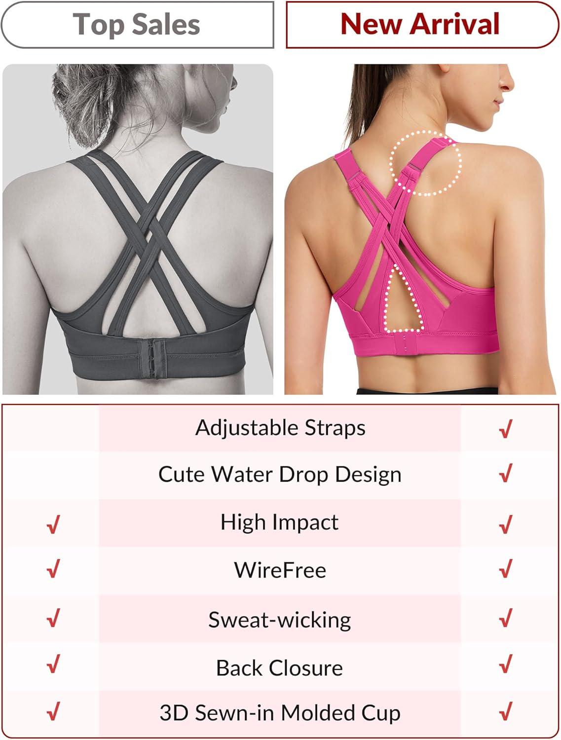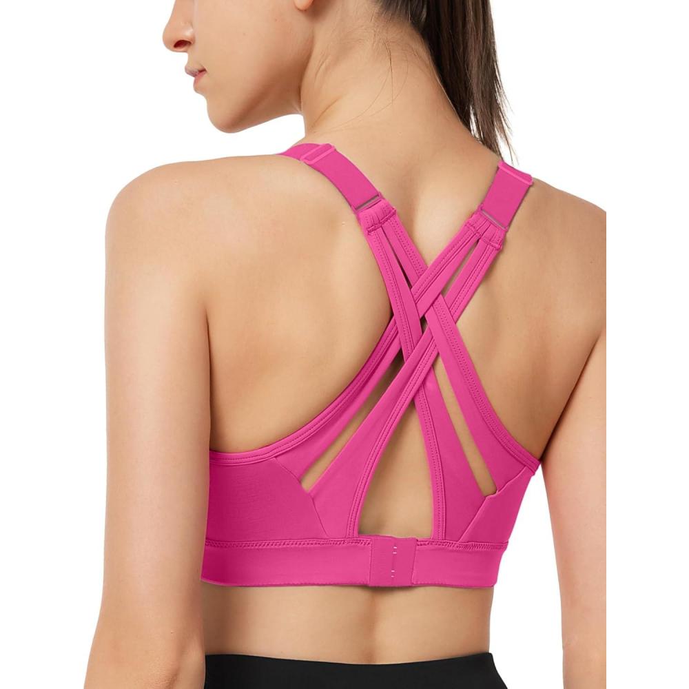 Yvette Sports Bra High Impact Adjustable Criss Cross Back, Full Support for Large Bust No Bounce(Dark Pink)