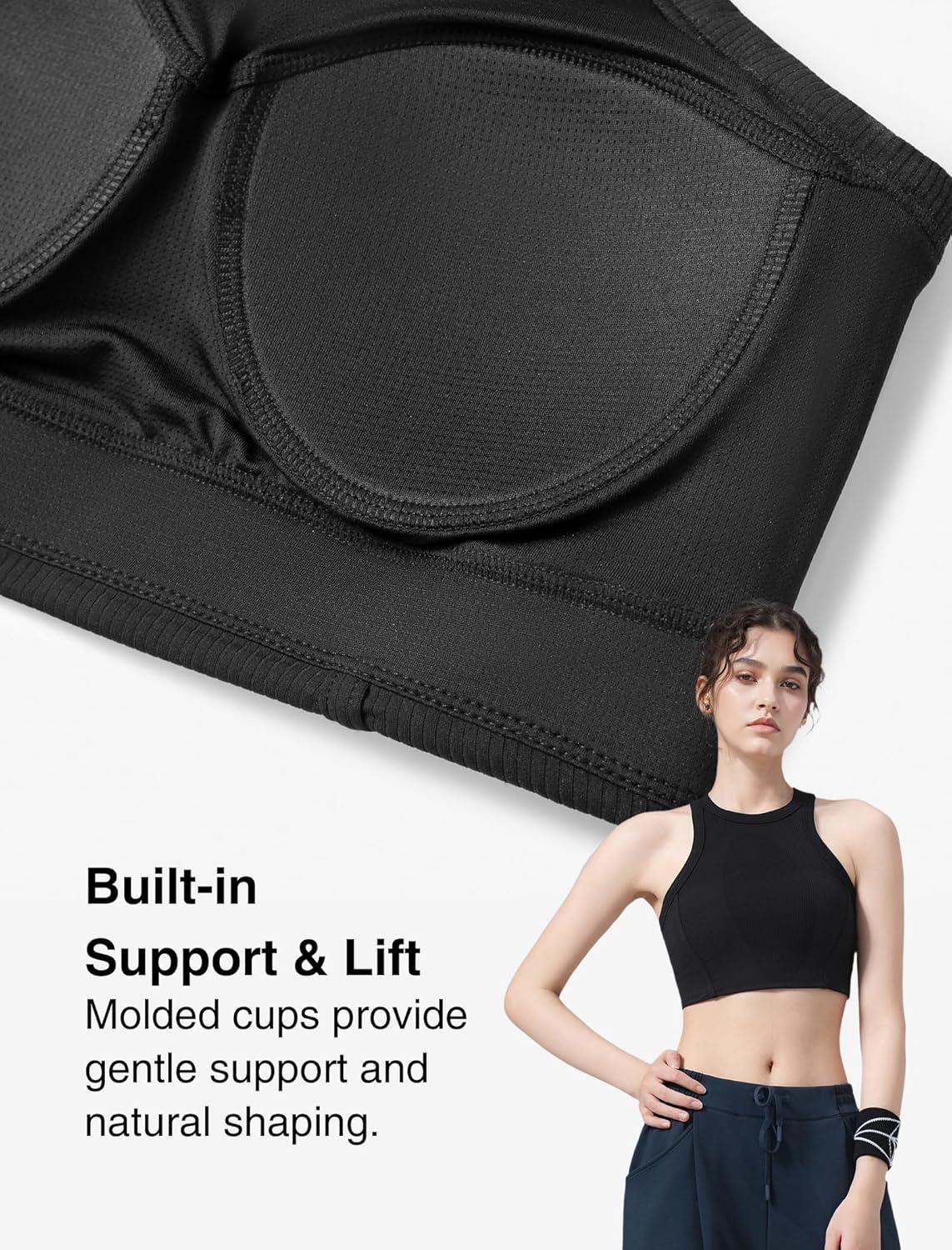 imageYvette Sports Bras for Women Ribbed High Neck Racerback TopsBlack