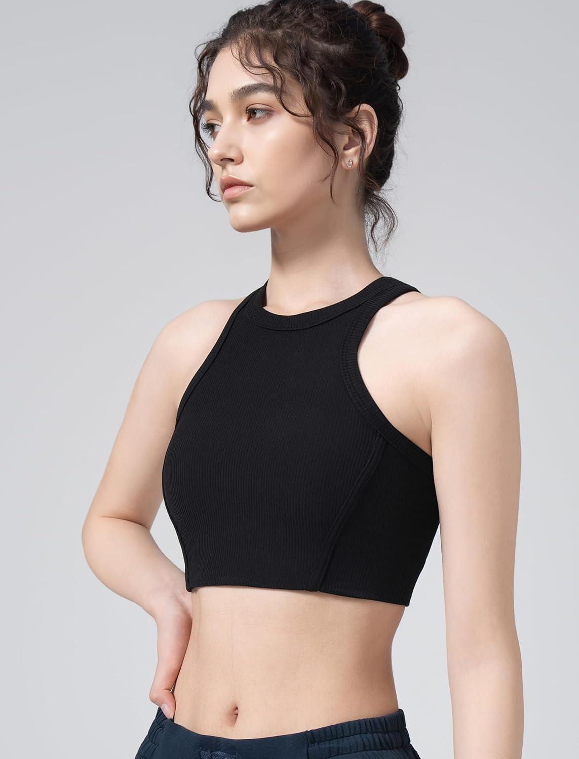 Be the first to review “Yvette Sports Bras for Women Ribbed High Neck Racerback Tops(Black)”