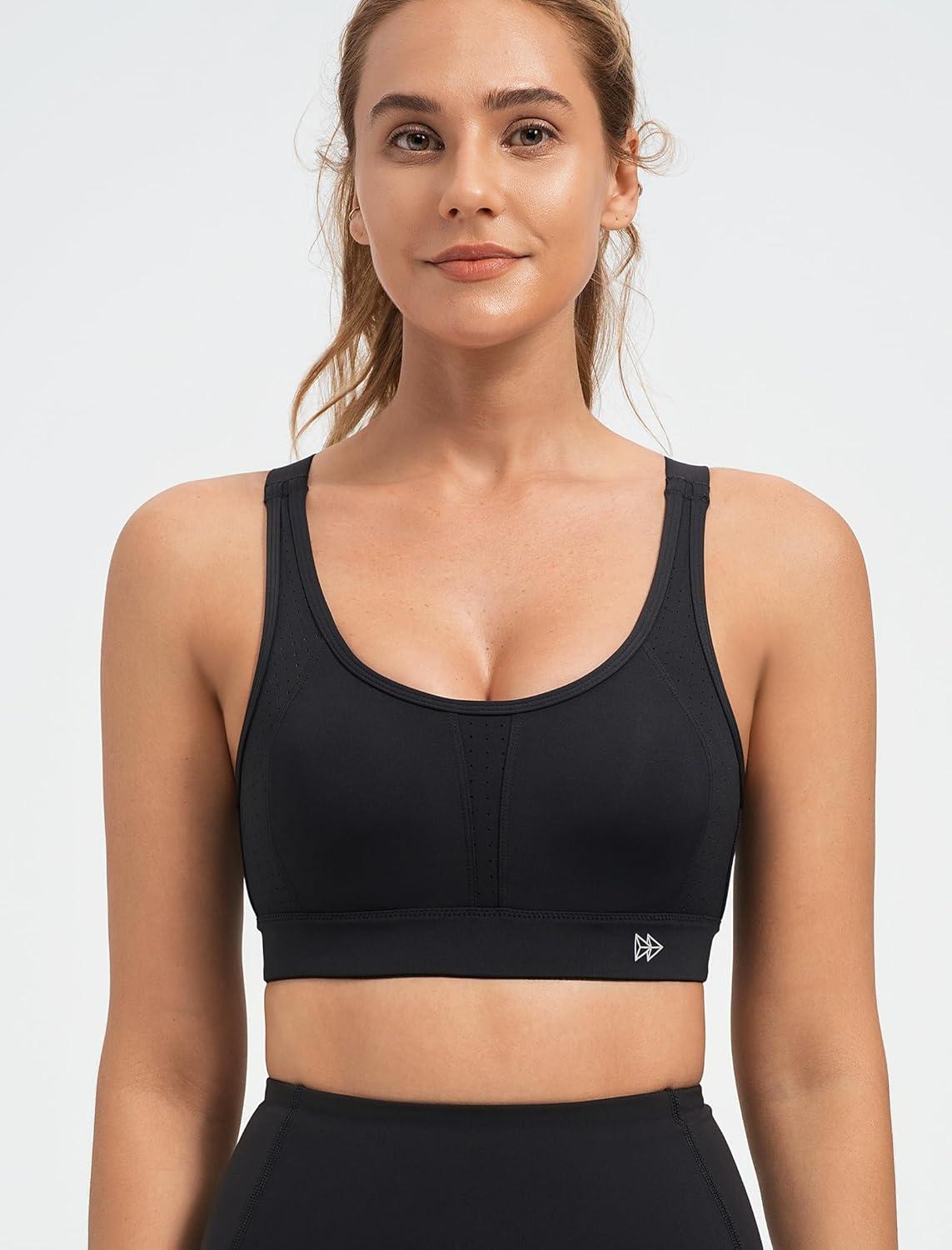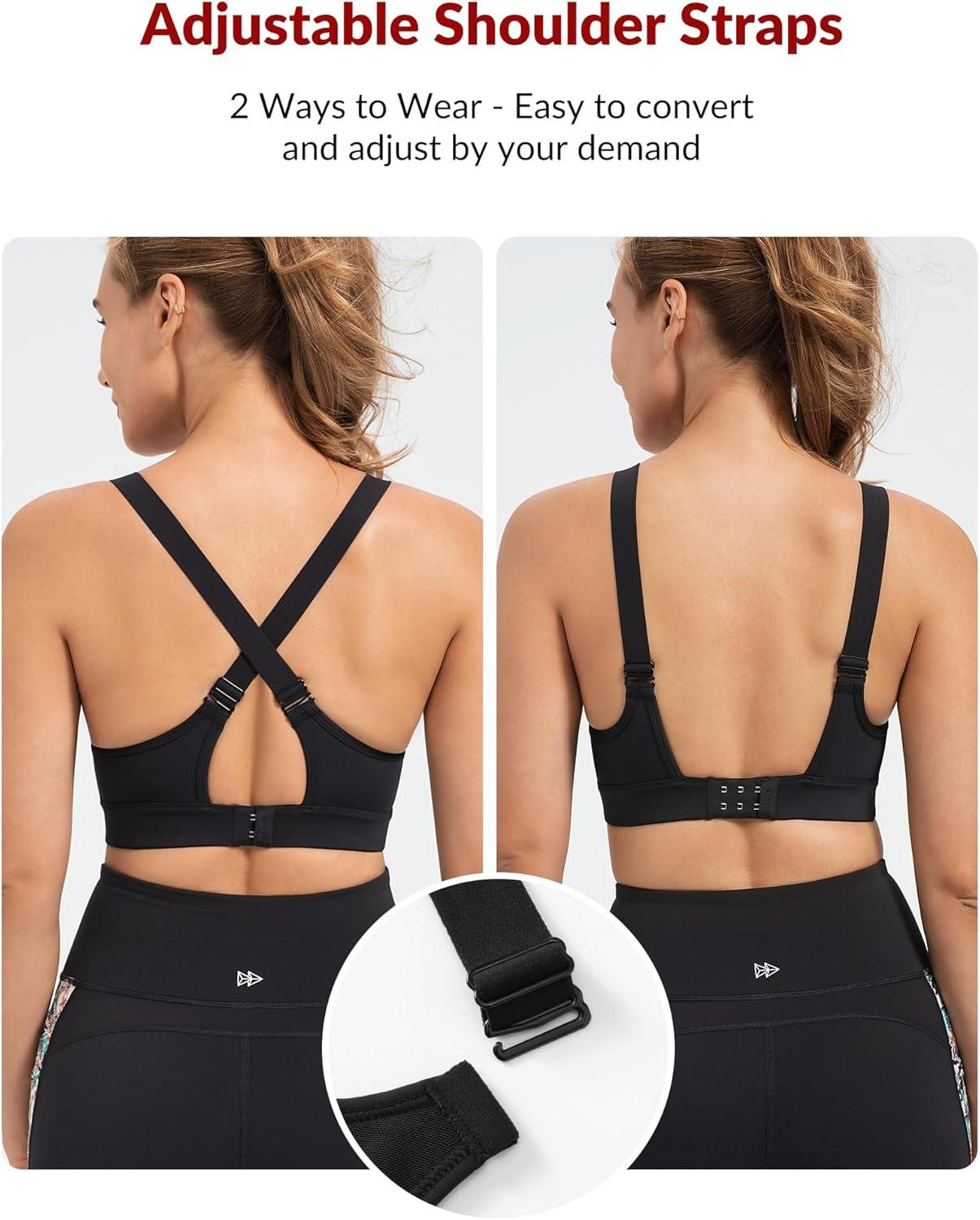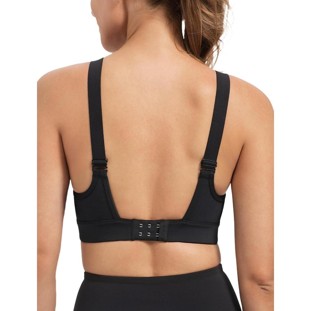 Yvette Supportive Sports Bra Adjustable Straps Plus Size Workout Running High Impact Sports Bras for Women Sewn in Pads(Black)