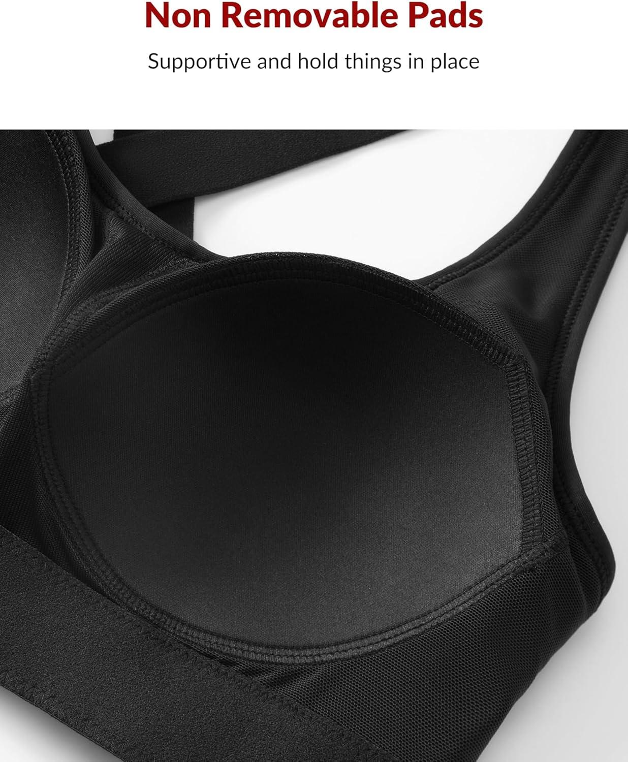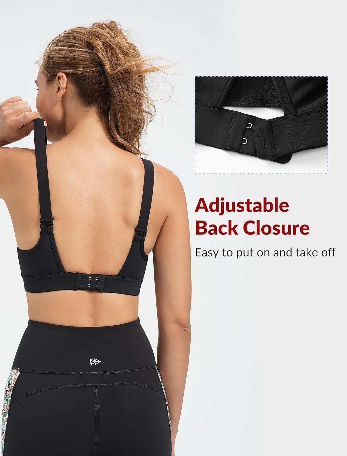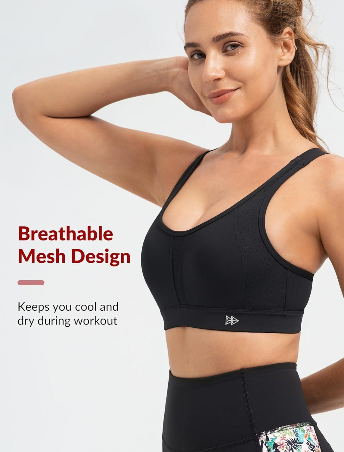 Yvette Supportive Sports Bra Adjustable Straps Plus Size Workout Running High Impact Sports Bras for Women Sewn in Pads(Black)