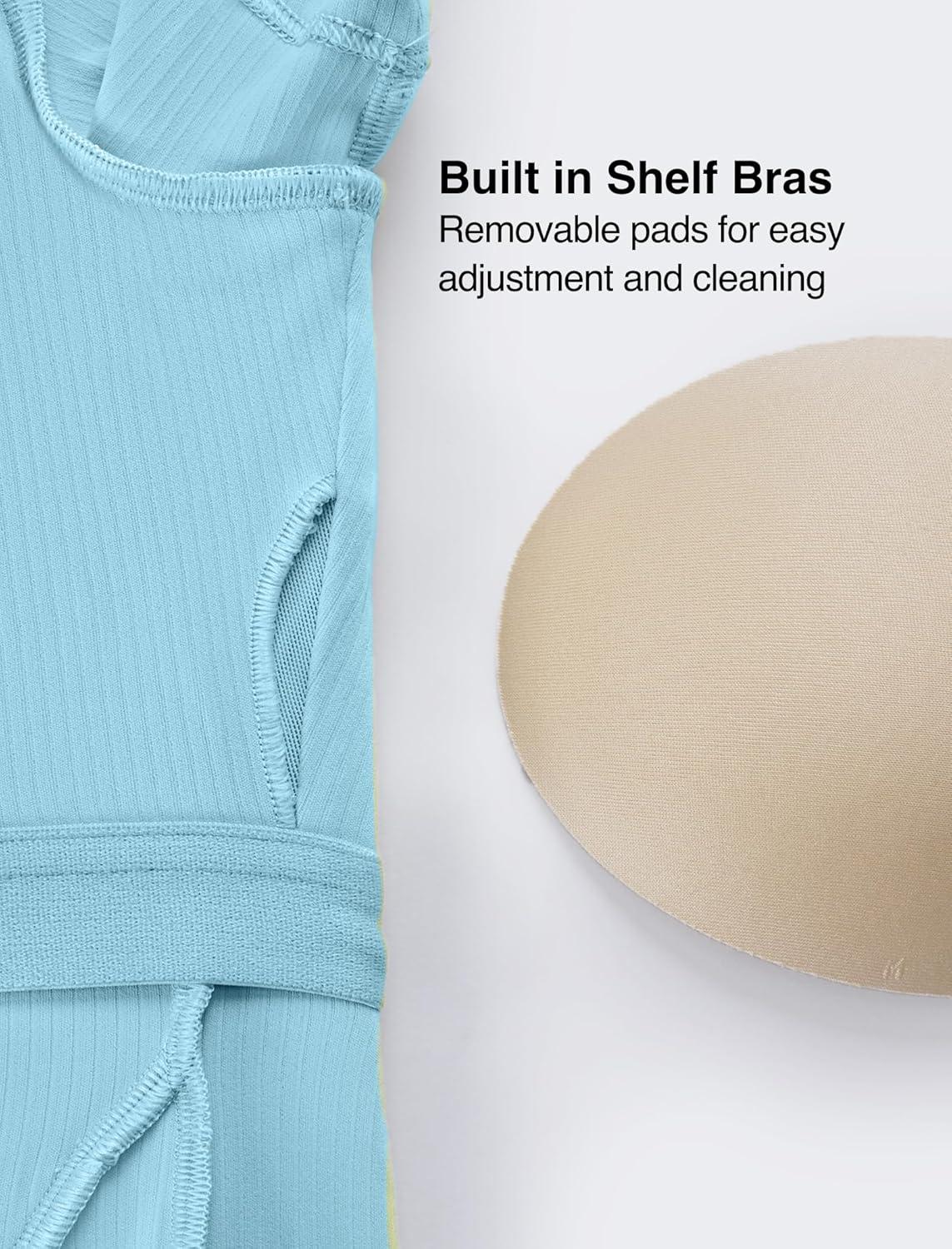 imageYvette Tank Top Built in Bra for Women Slim Fitted Casual Short Sleeve Ruched Athletic Shirts for Gym Yoga RunningBlue