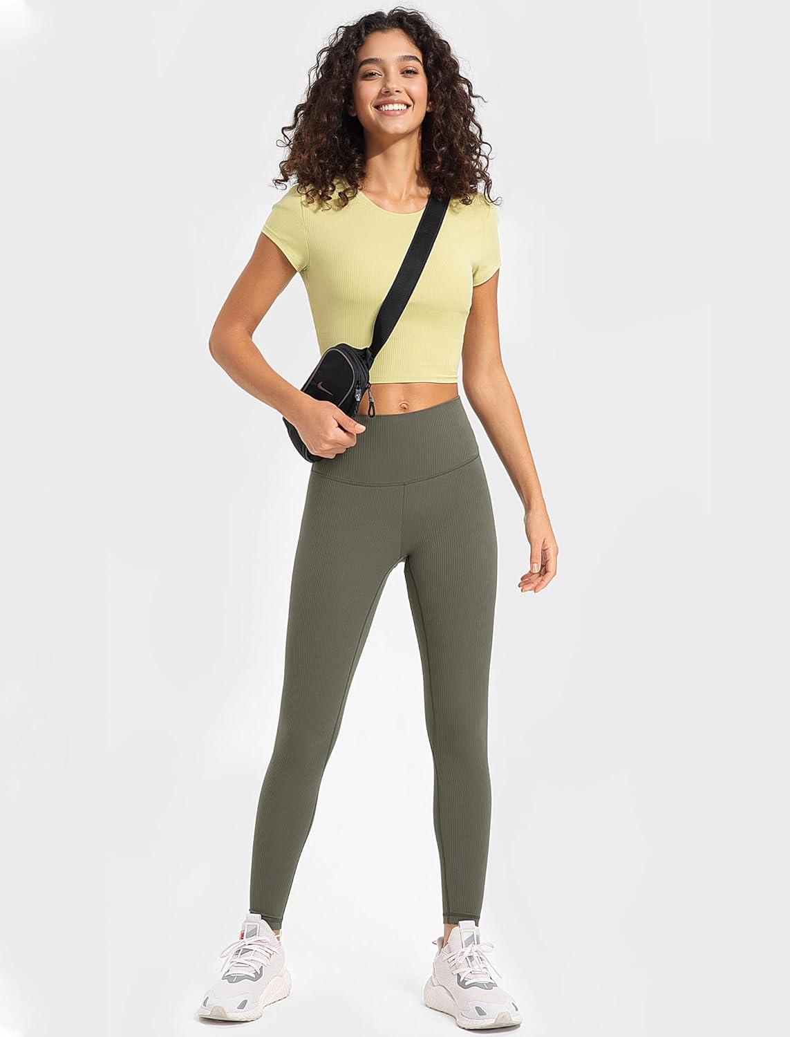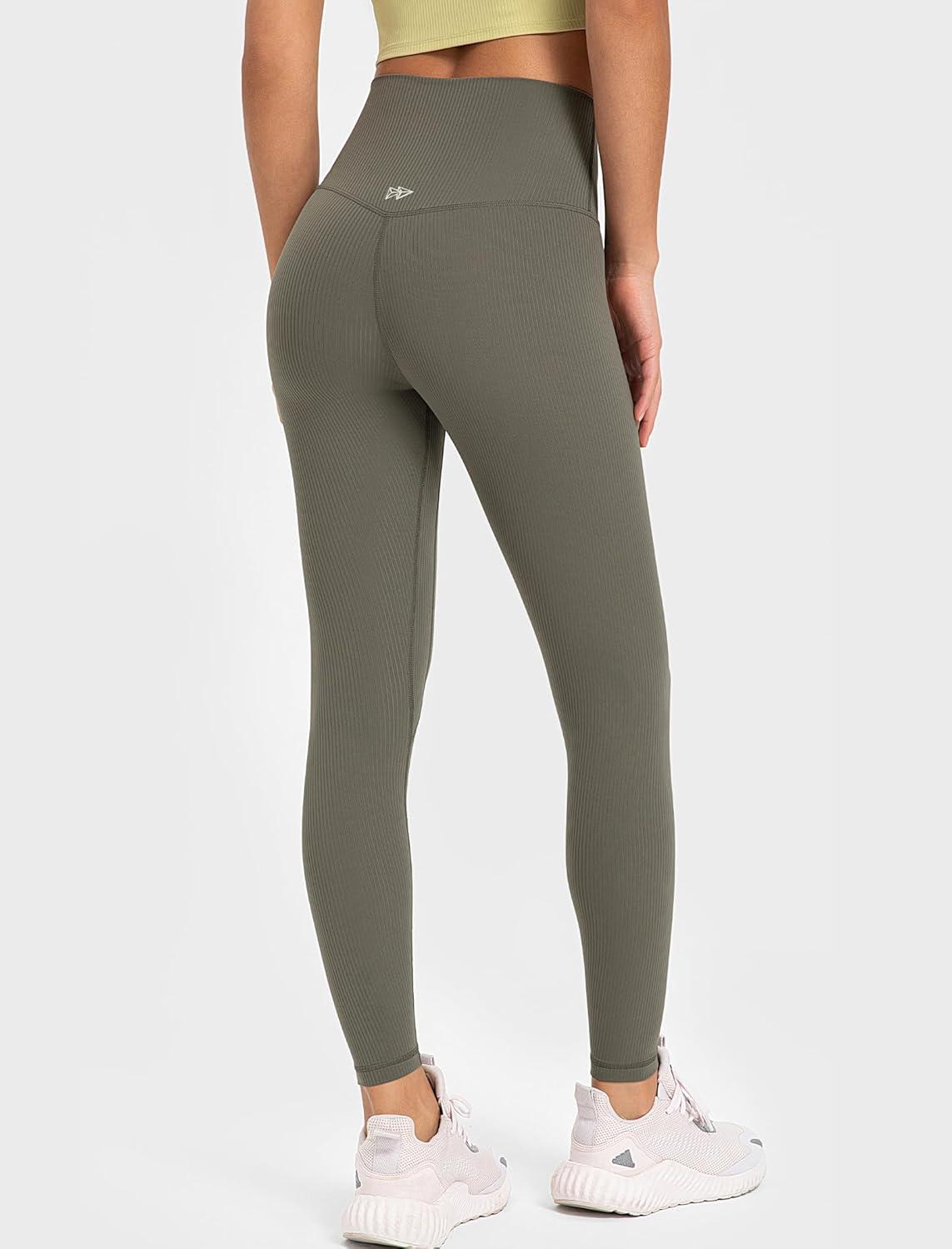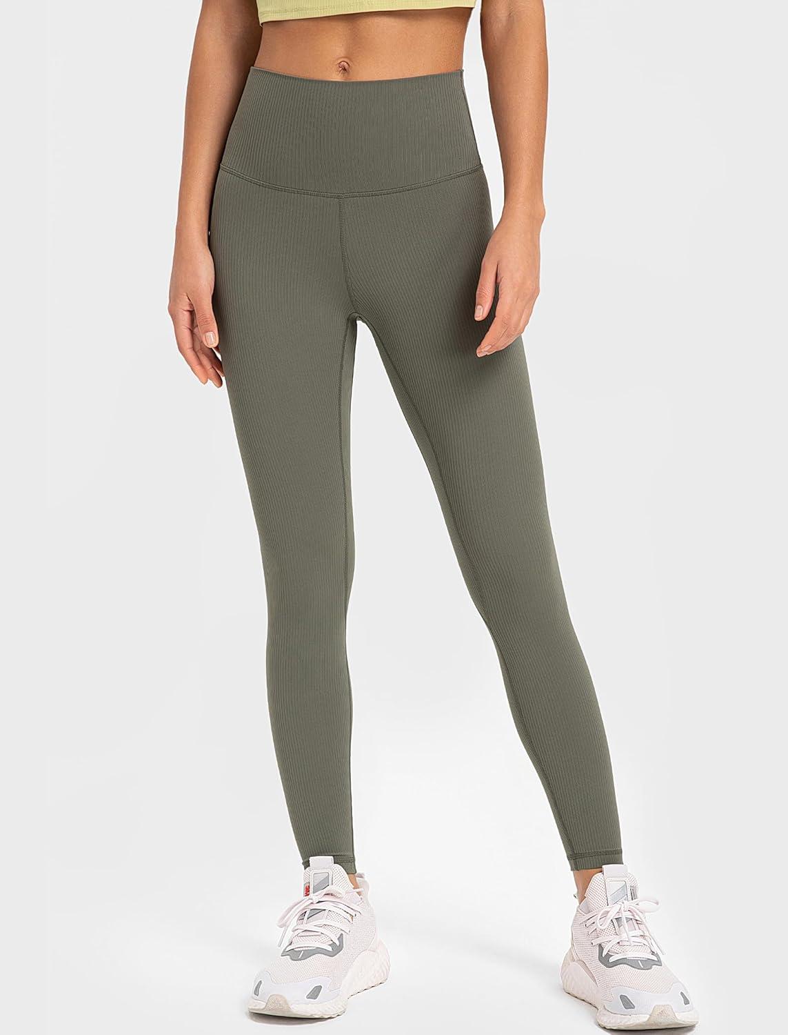 Yvette Tummy Control Workout Leggings for Women High Waisted Yoga Pants Rib Knit Non See-Through(Army Green)