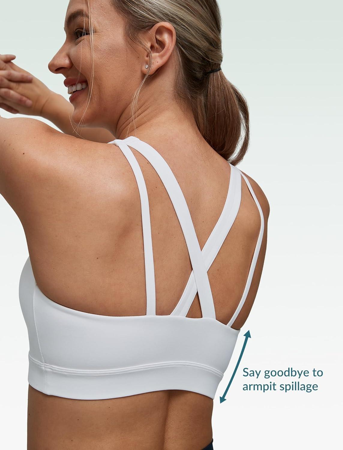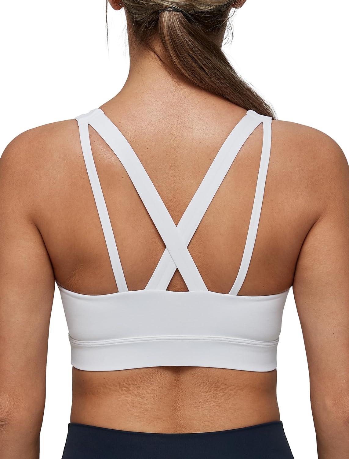 imageYvette V Neck Criss Cross Back Yoga Sports Bra Women Wide Straps Light Support Removable Padding Workout Tank TopWhite