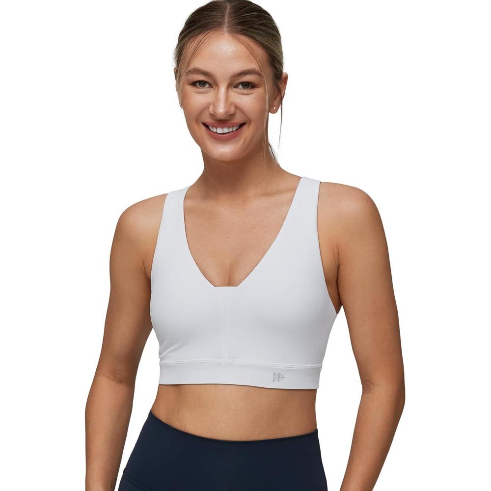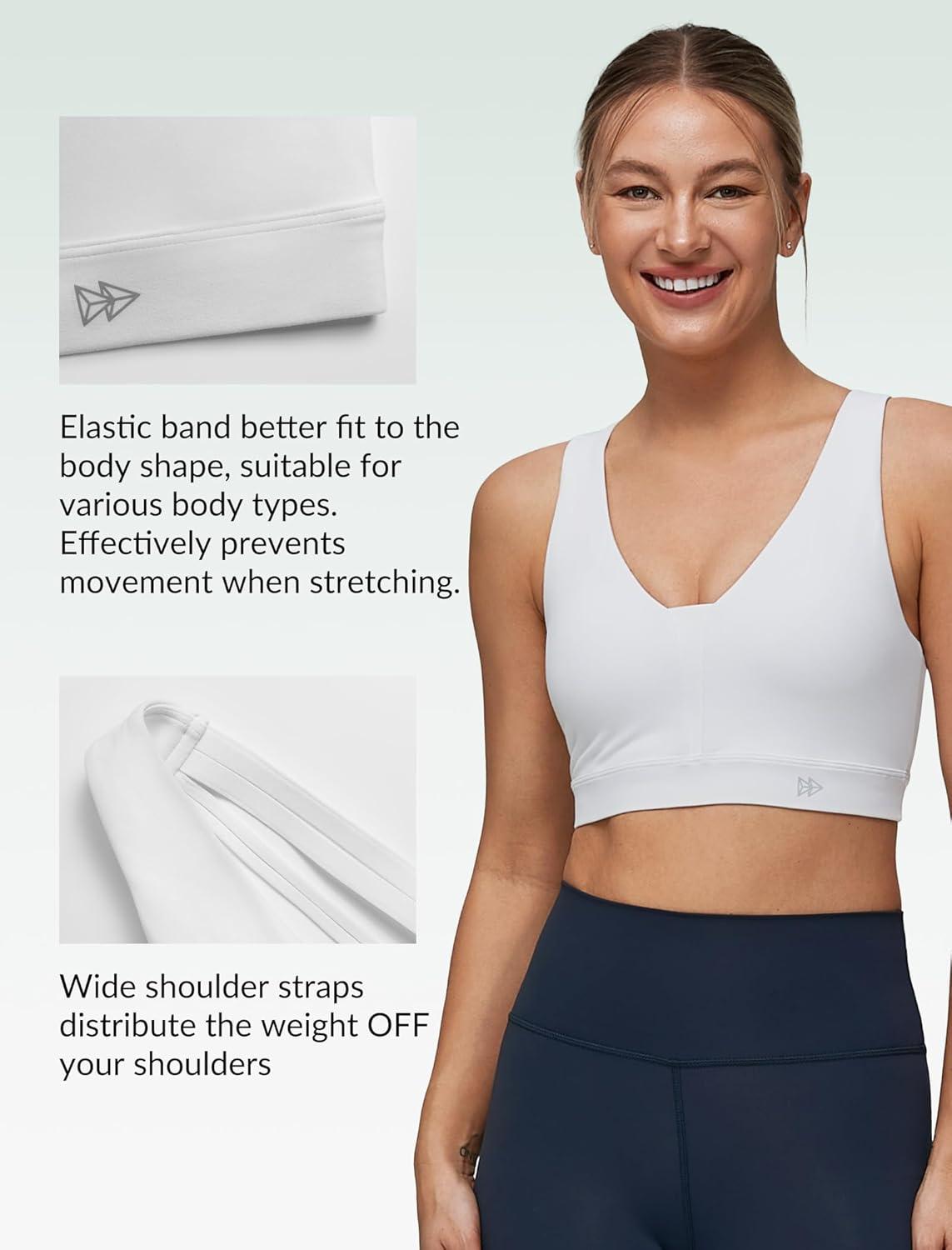 Yvette V Neck Criss Cross Back Yoga Sports Bra Women Wide Straps Light Support Removable Padding Workout Tank Top(White)