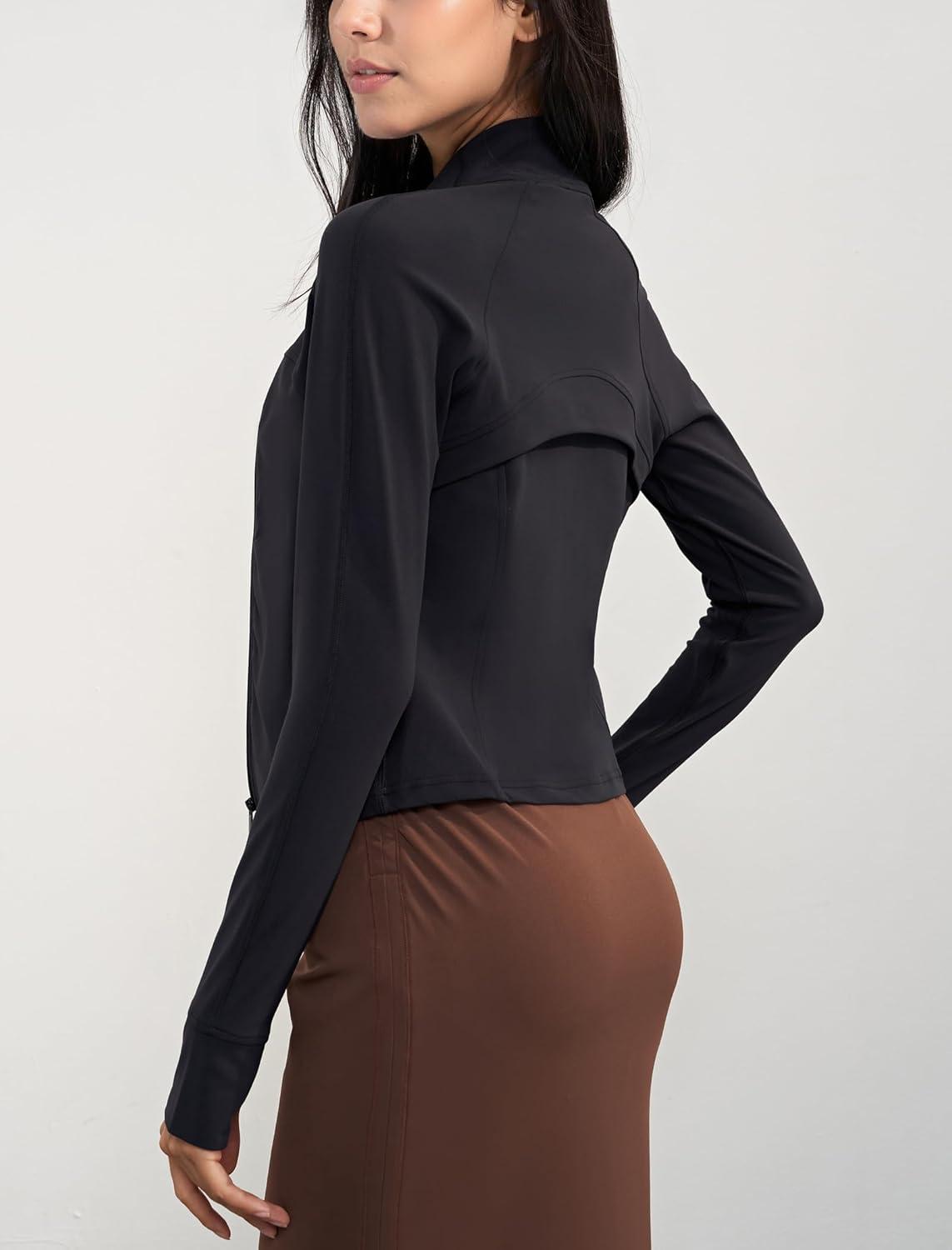 Yvette Women's Athletic Full Zip Lightweight Workout Jackets with Thumb Holes Gym Shirts Running Clothes with Pocket(Black)