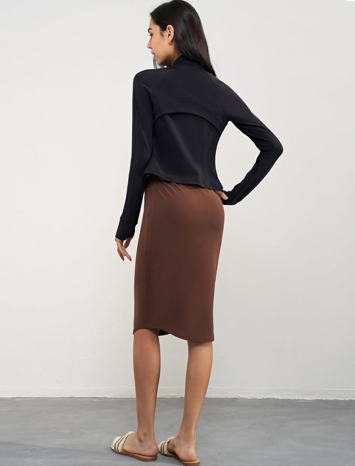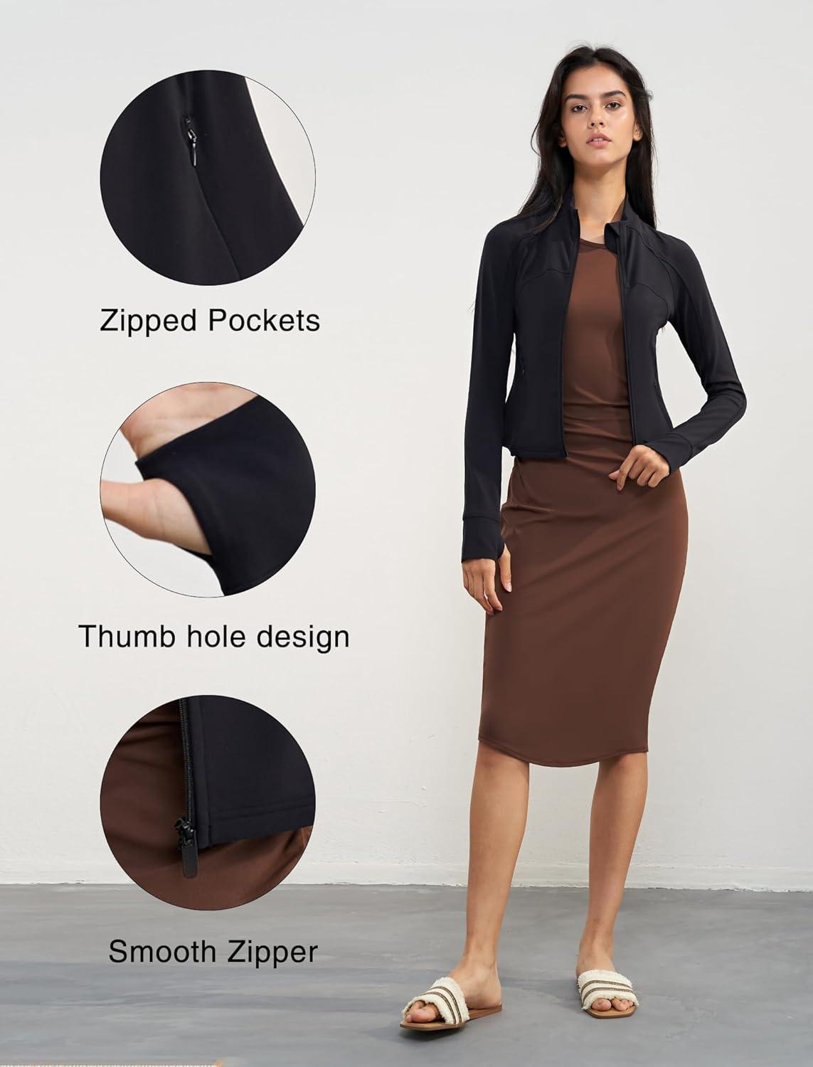 Yvette Women’s Athletic Full Zip Lightweight Workout Jackets with Thumb Holes Gym Shirts Running Clothes with Pocket(Black)