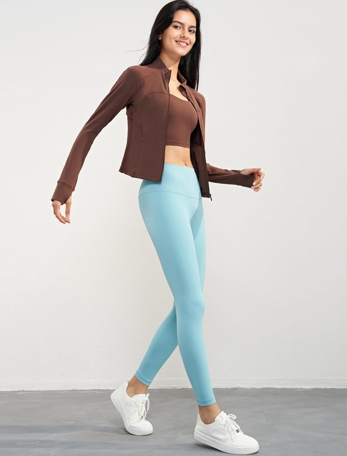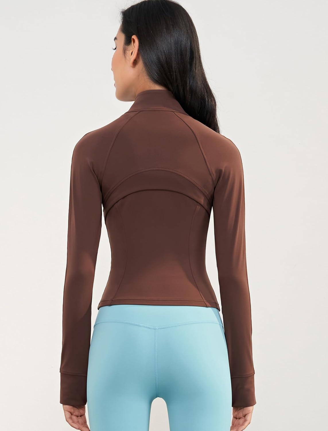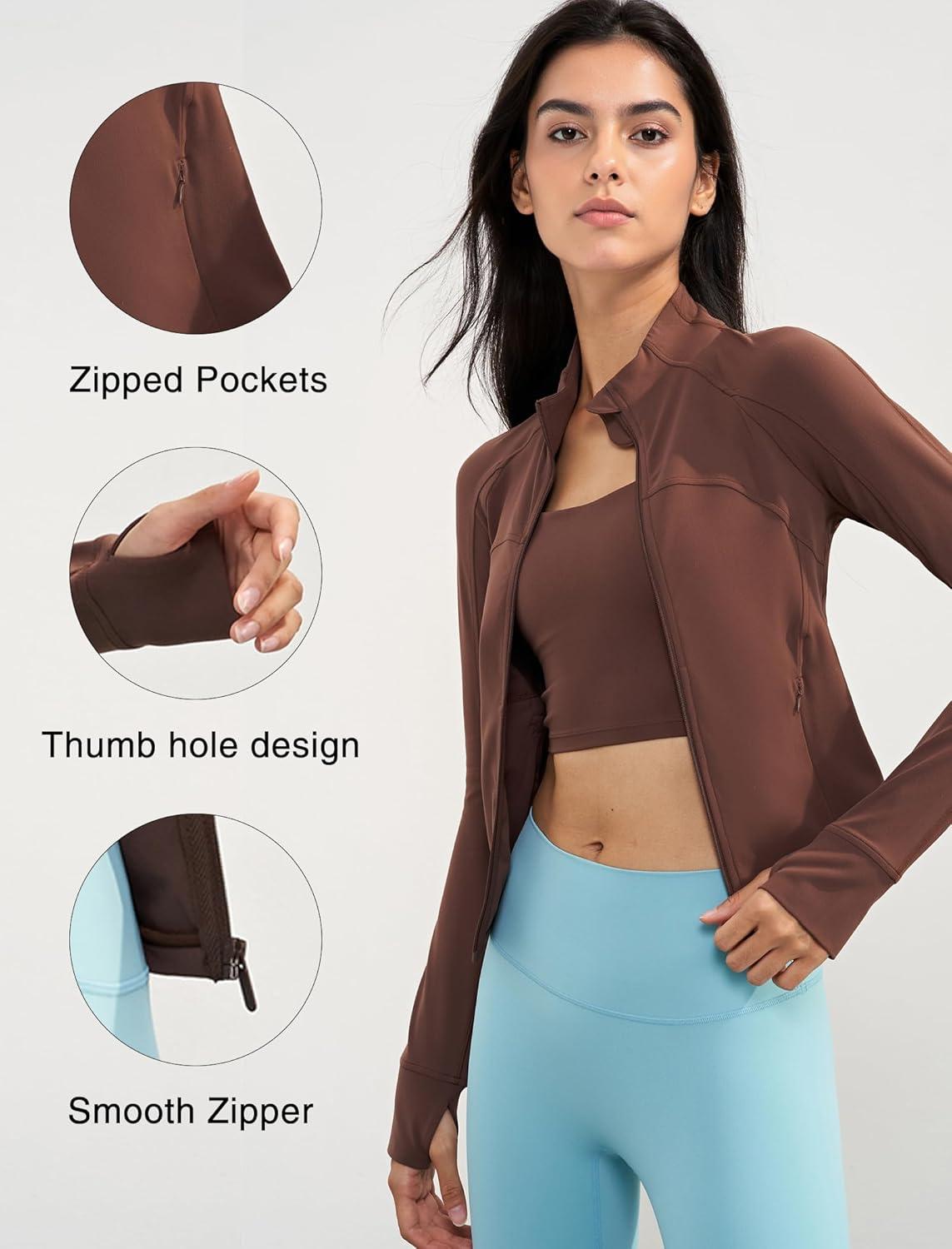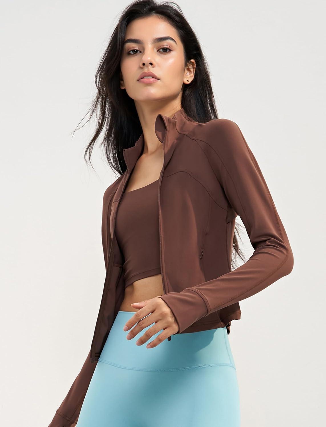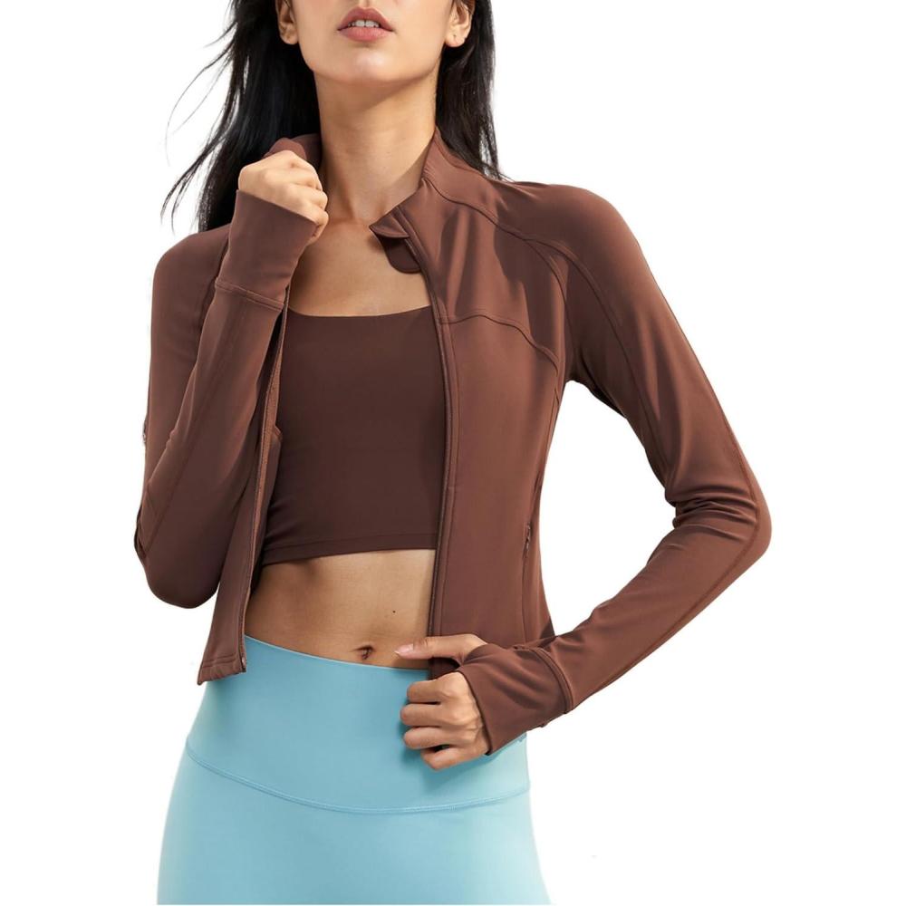 Yvette Women's Athletic Full Zip Lightweight Workout Jackets with Thumb Holes Gym Shirts Running Clothes with Pocket(Brown)