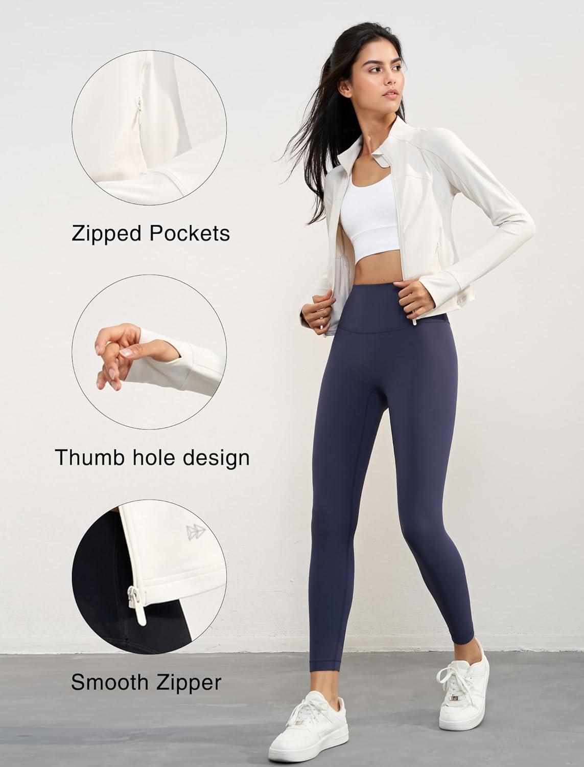 Yvette Women's Athletic Full Zip Lightweight Workout Jackets with Thumb Holes Gym Shirts Running Clothes with Pocket(Off-white)
