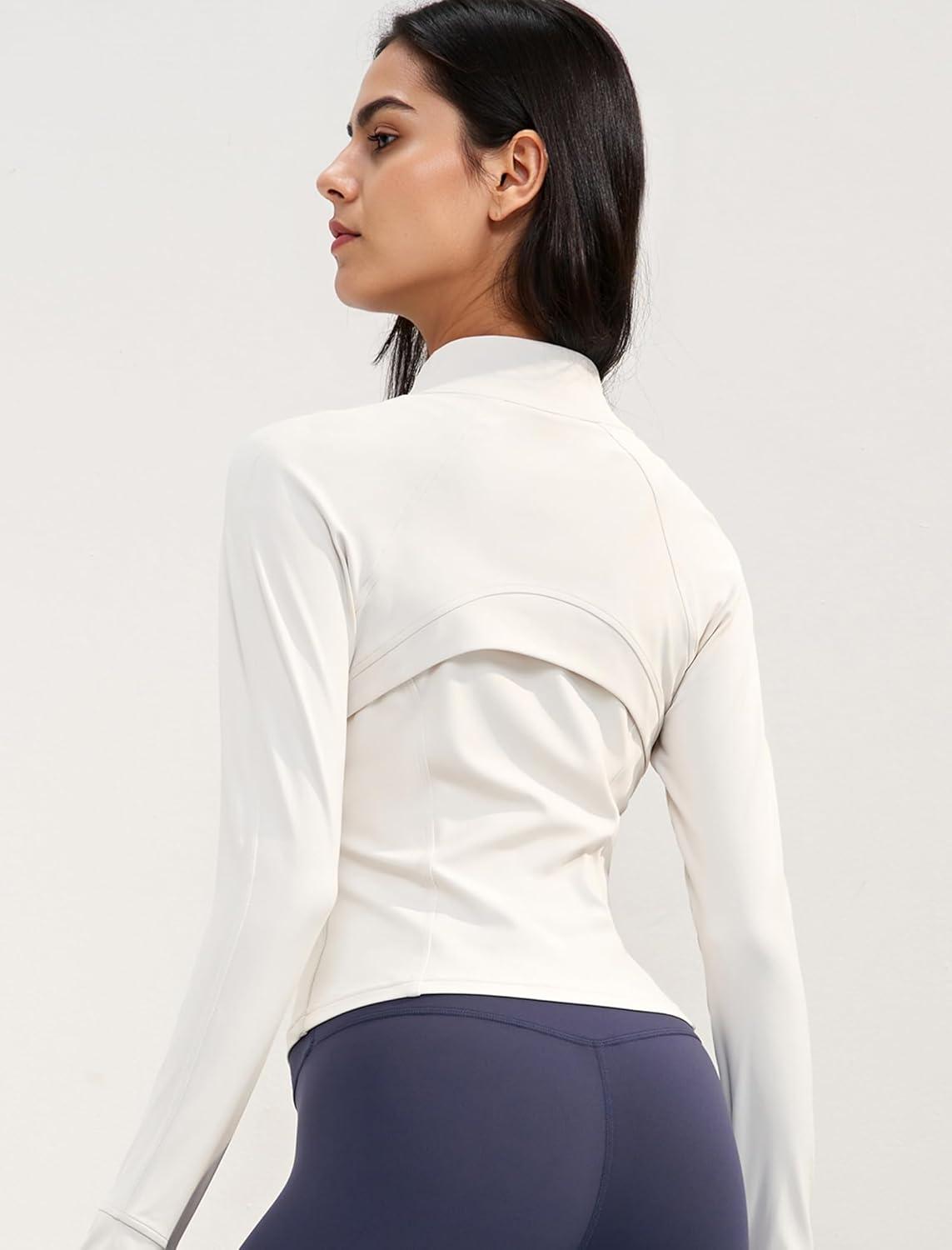 imageYvette Womens Athletic Full Zip Lightweight Workout Jackets with Thumb Holes Gym Shirts Running Clothes with PocketOffwhite