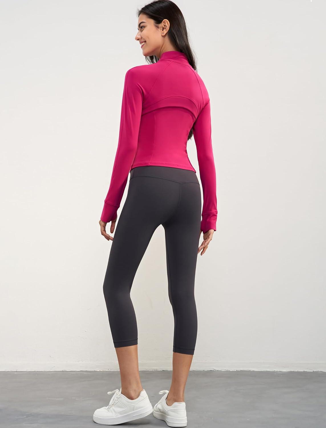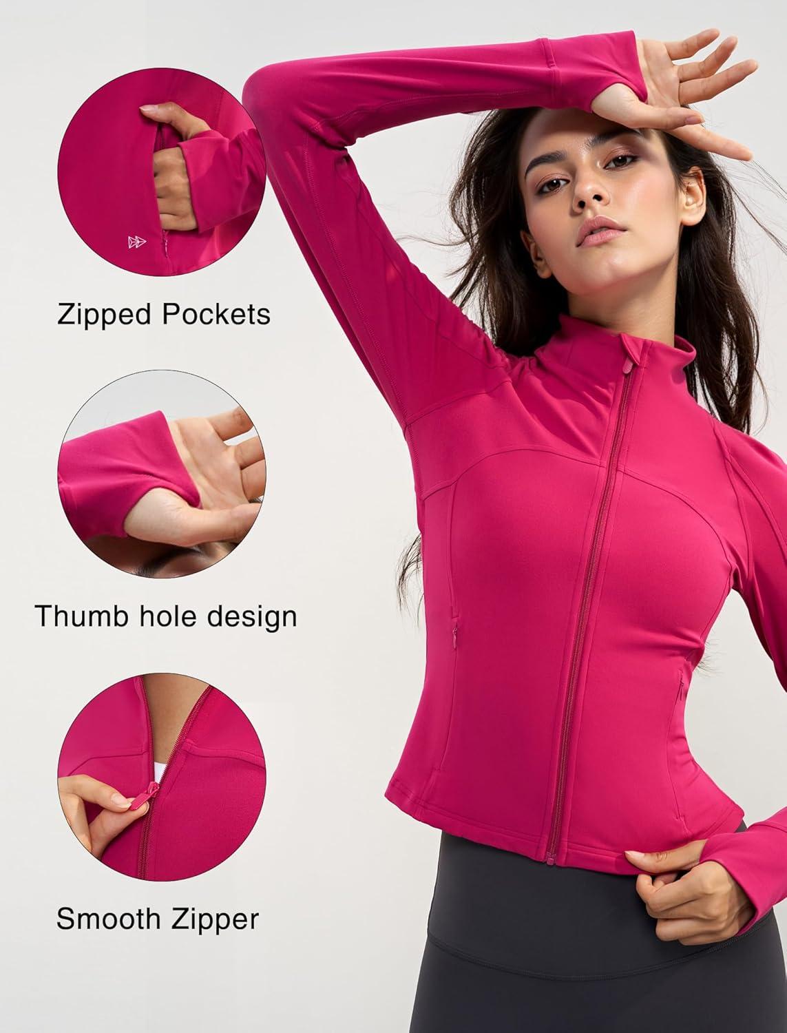 Yvette Women’s Athletic Full Zip Lightweight Workout Jackets with Thumb Holes Gym Shirts Running Clothes with Pocket(Rose Red)