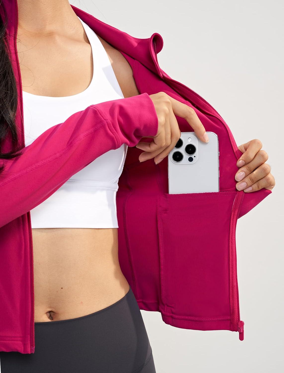 Yvette Women's Athletic Full Zip Lightweight Workout Jackets with Thumb Holes Gym Shirts Running Clothes with Pocket(Rose Red)