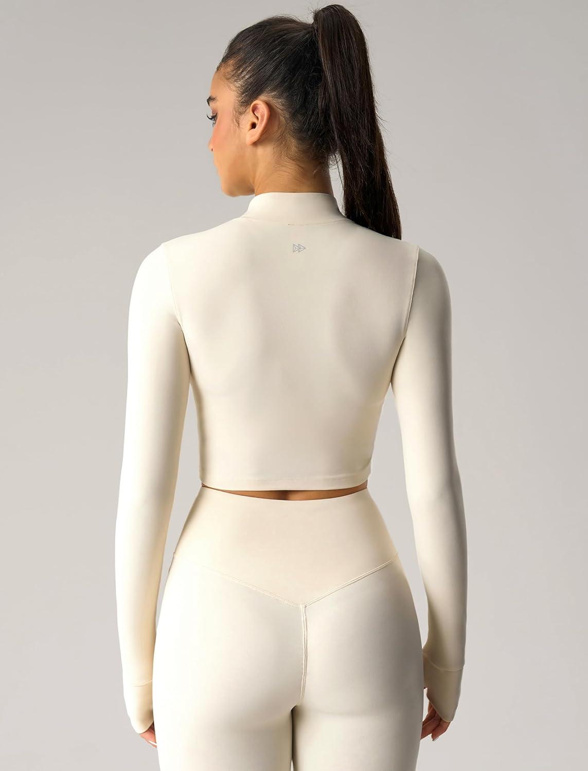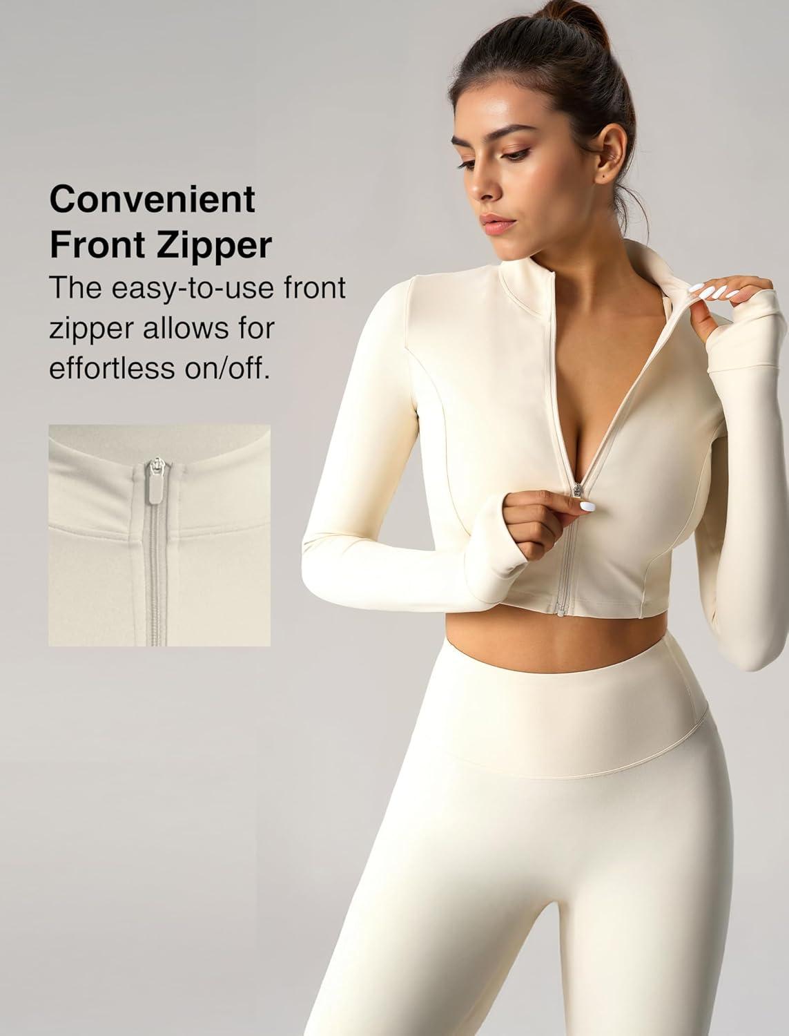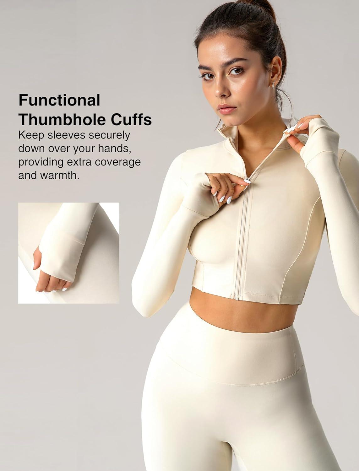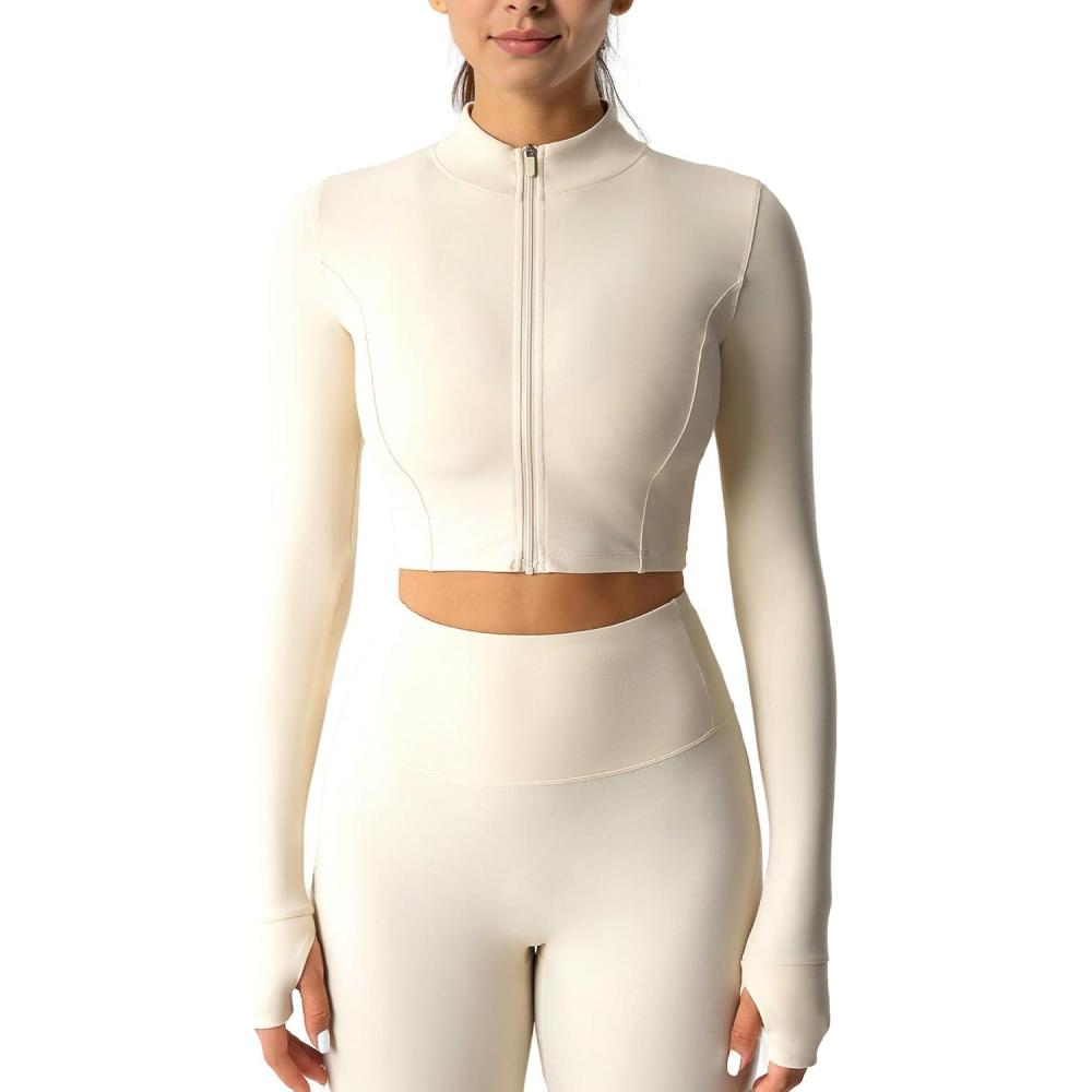 Yvette Women's Athletic Full Zip Workout Jacket with Thumb Holes Running Yoga Slim Fit Cropped Jacket(Apricot)