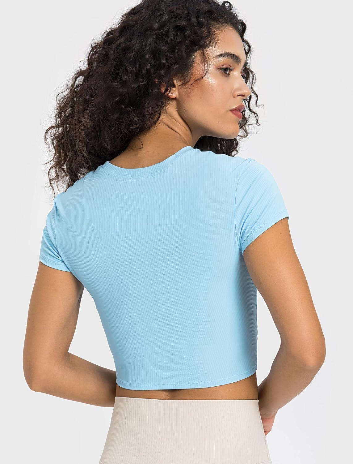 imageYvette Womens Athletic TShirts Workout Crop Top Short Sleeve Running Basic Tee Gym Casual Cropped ShirtsBlue