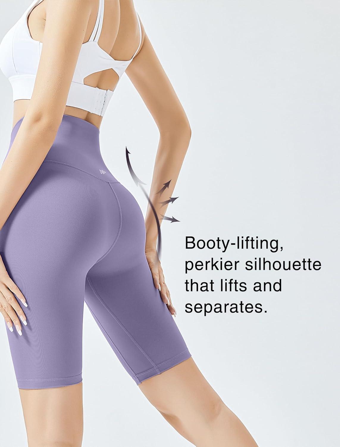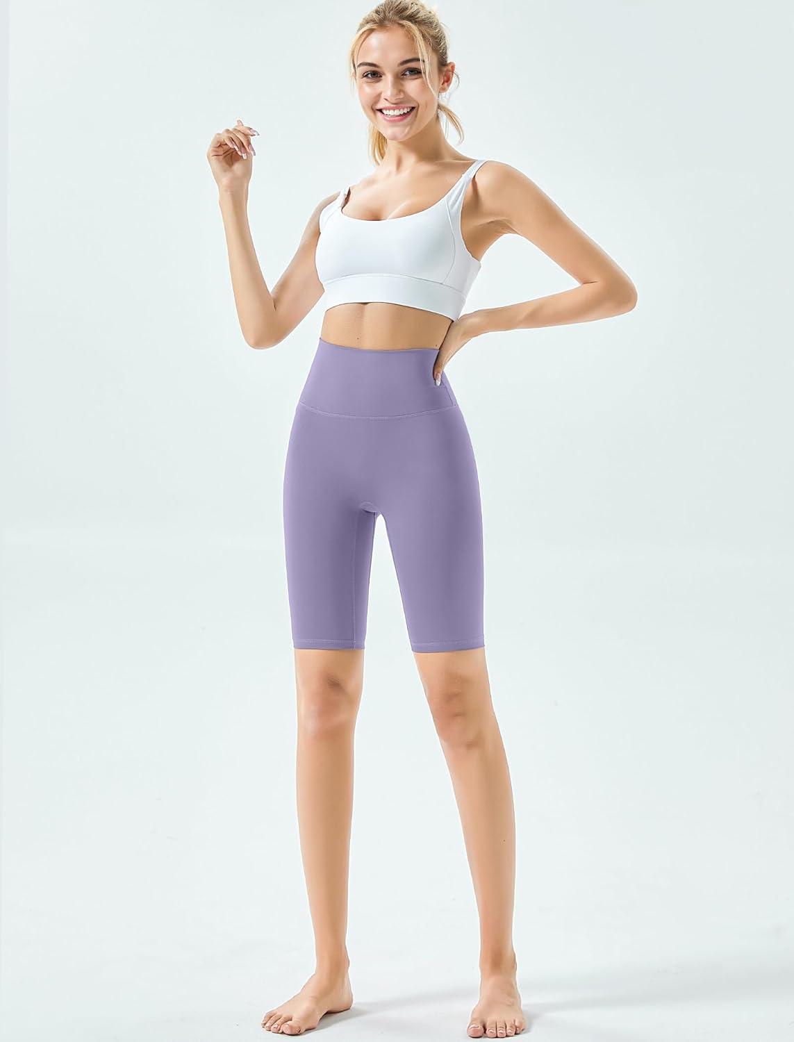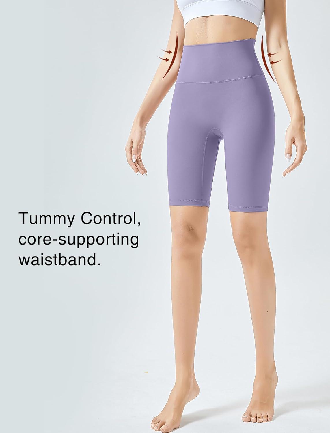 imageYvette Womens Biker Shorts Tummy Control High Waist Running Workout Yoga ShortsPurple