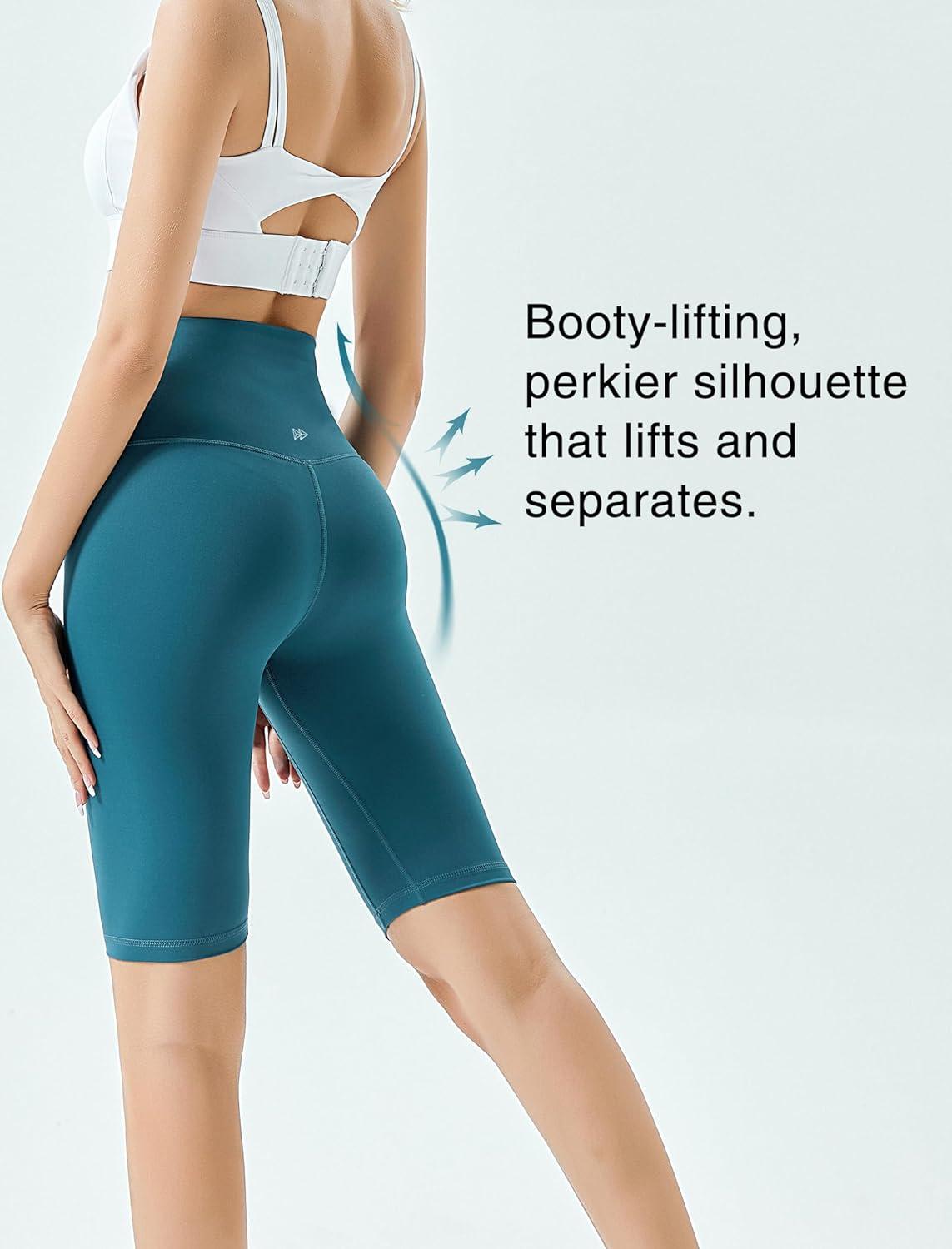 Yvette Womens Biker Shorts Tummy Control High Waist Running Workout Yoga Shorts(Sea Blue)